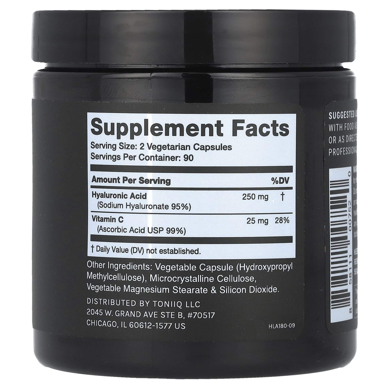 Наша гиалуроновая кислота производится с использованием процесса ферментации с чистотой не менее 95%. Каждая порция 275 мг дает 250 мг порошка гиалуроновой кислоты высочайшего качества и 25 мг аскорбинового витамина С для повышения биодоступности и эффективности.