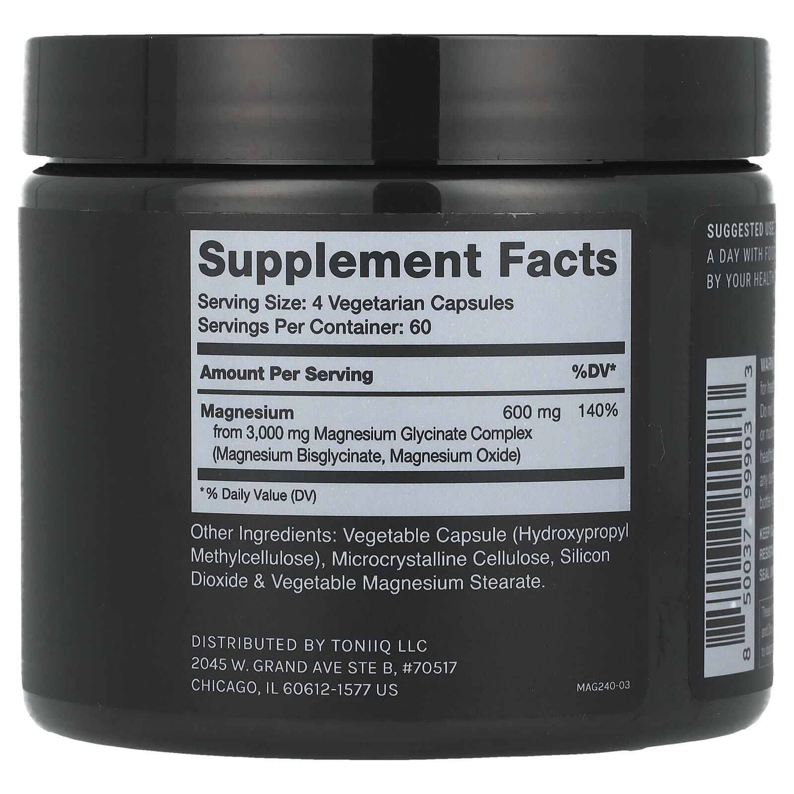 Наш глицинат магния производится с использованием запатентованного процесса экстракции, обеспечивающего концентрированную дозу элементарного магния в 600 мг. Каждая капсула содержит в два раза больше элементарного магния, чем продукты других брендов, что дает вам один из самых эффективных и оптимальных продуктов магния.