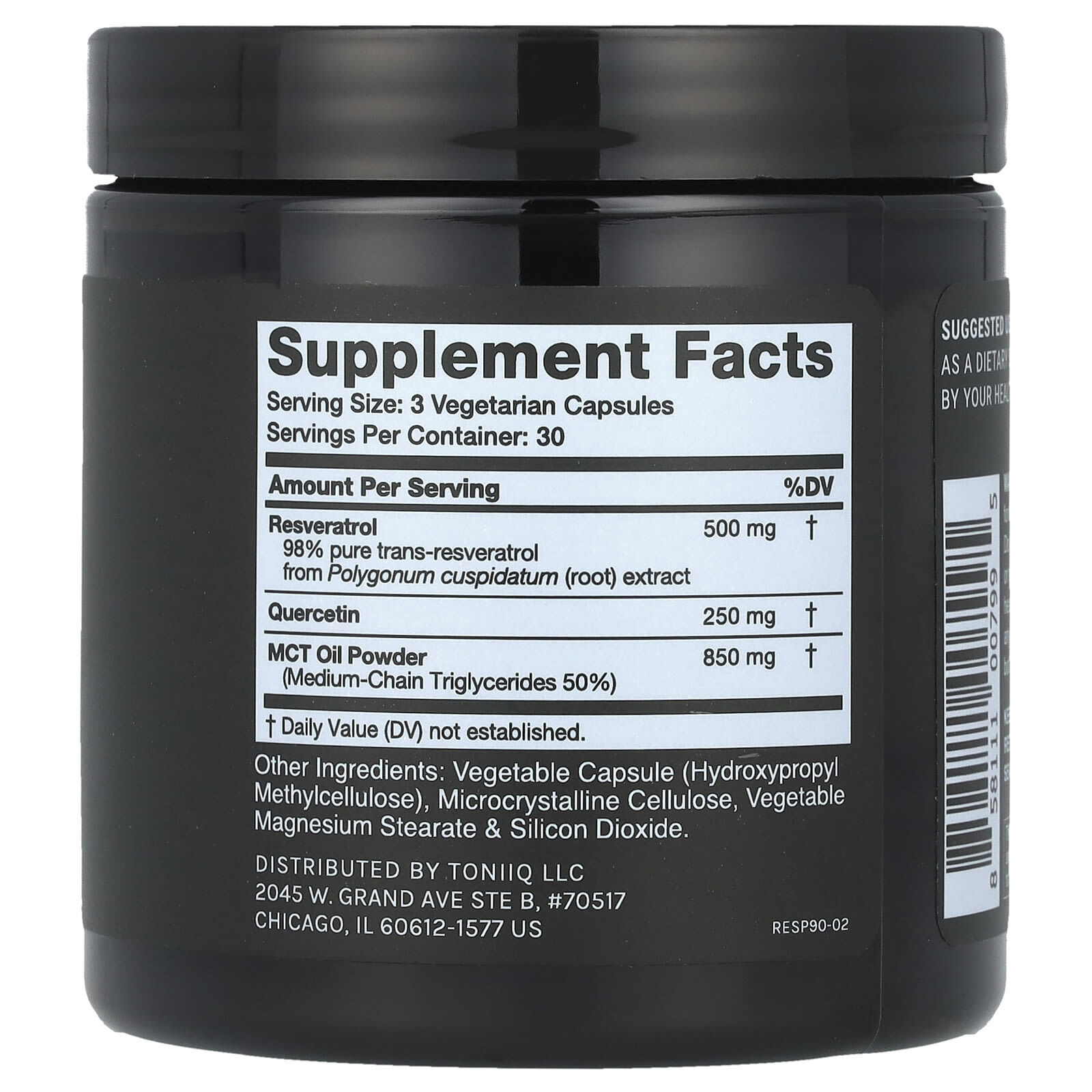 Это революционное сочетание ресвератрола и кверцетина с маслом MCT для повышения биодоступности. Каждая порция 1600 мг содержит 500 мг ресвератрола и 250 мг кверцетина, выбранных из-за их синергетического воздействия на NAD + и сиртуины, а также из-за того, что это может повлиять на продолжительность жизни, особенно на снижение возрастных маркеров в условиях высокого уровня глюкозы.