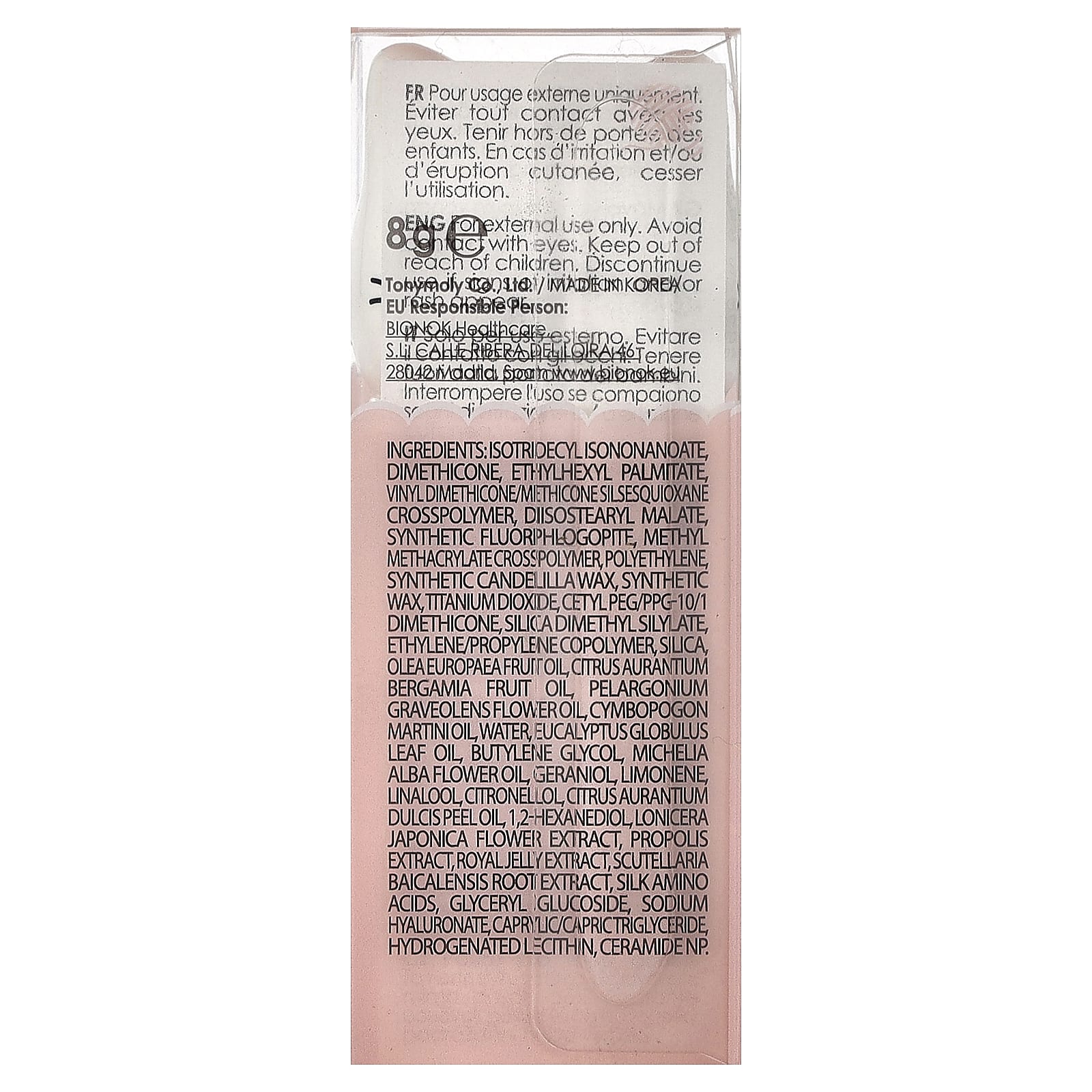 Изотридецил изононаноат, диметикон, этилгексил пальмитат, Кроссполимер винилдиметикона/метикона силсесквиоксана, диизостеарил малат, синтетический флурфлогопит, кроссполимер метилметакрилата, полиэтилен, синтетический канделильский воск, синтетический воск, диоксид титана, Цетил ПЭГ/ППГ-10/1 Диметикон, диметилсилат диоксида кремния, сополимер этилена/пропилена, кремнезем, масло оливы европейской (Olea europaea), масло из плодов апельсина (Citrus aurantium bergamia) масло из цветков герани (Pelargonium graveolens), масло пальмарозы (Cymbopogon martini), Вода, масло листьев эвкалипта (Eucalyptus globulus), бутиленгликоль, масло из цветков михелии (Michelia alba), Гераниол, лимонен, линалоол, цитронеллол, масло из цедры апельсина сладкого (Citrus aurantium dulcis), 1,2-гександиол, экстракт цветков жимолости (Lonicera japonica), экстракт прополиса, экстракт маточного молочка, экстракт корня шлемника (Scutellaria baicalensis), аминокислоты шелка, глицерил глюкозид, гиалуронат натрия, каприловый/каприновый триглицерид, Гидрогенизированный лецитин, керамид NP.