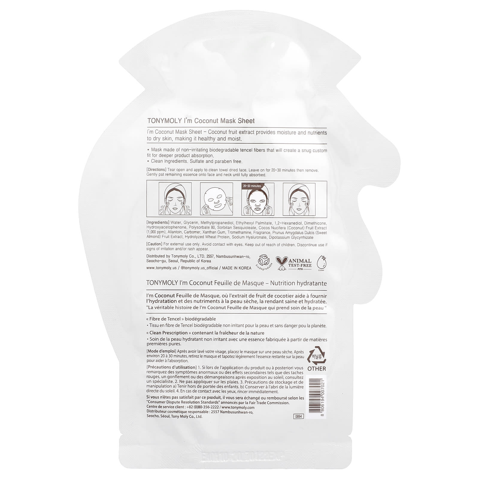 Тканевая маска I'm Coconut с экстрактом плодов кокоса насыщает сухую кожу влагой и питательными веществами, делая ее здоровой и увлажненной.
