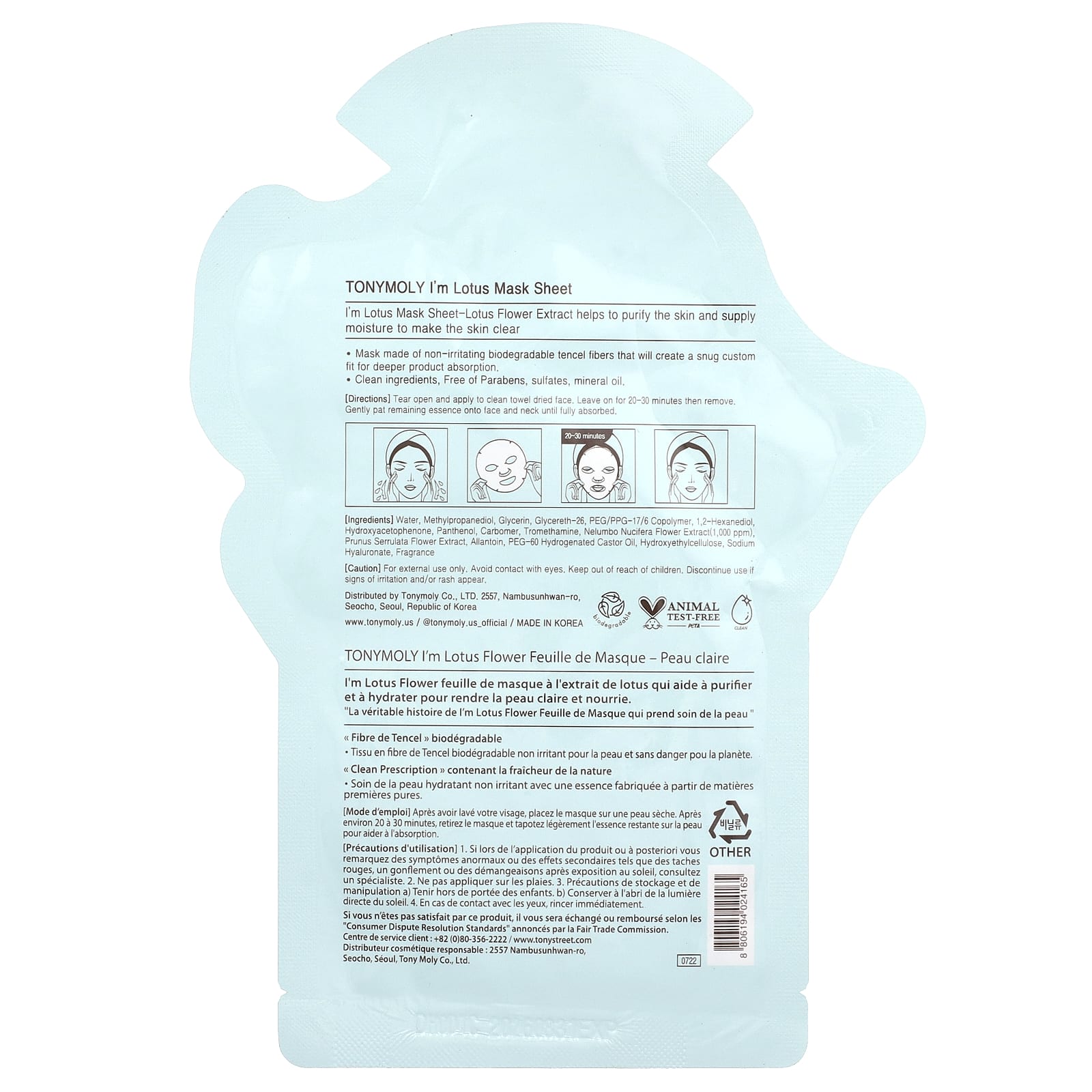 Маска из биоразлагаемых волокон Tencel, не вызывающих раздражения, плотно прилегает к коже для более глубокого впитывания.