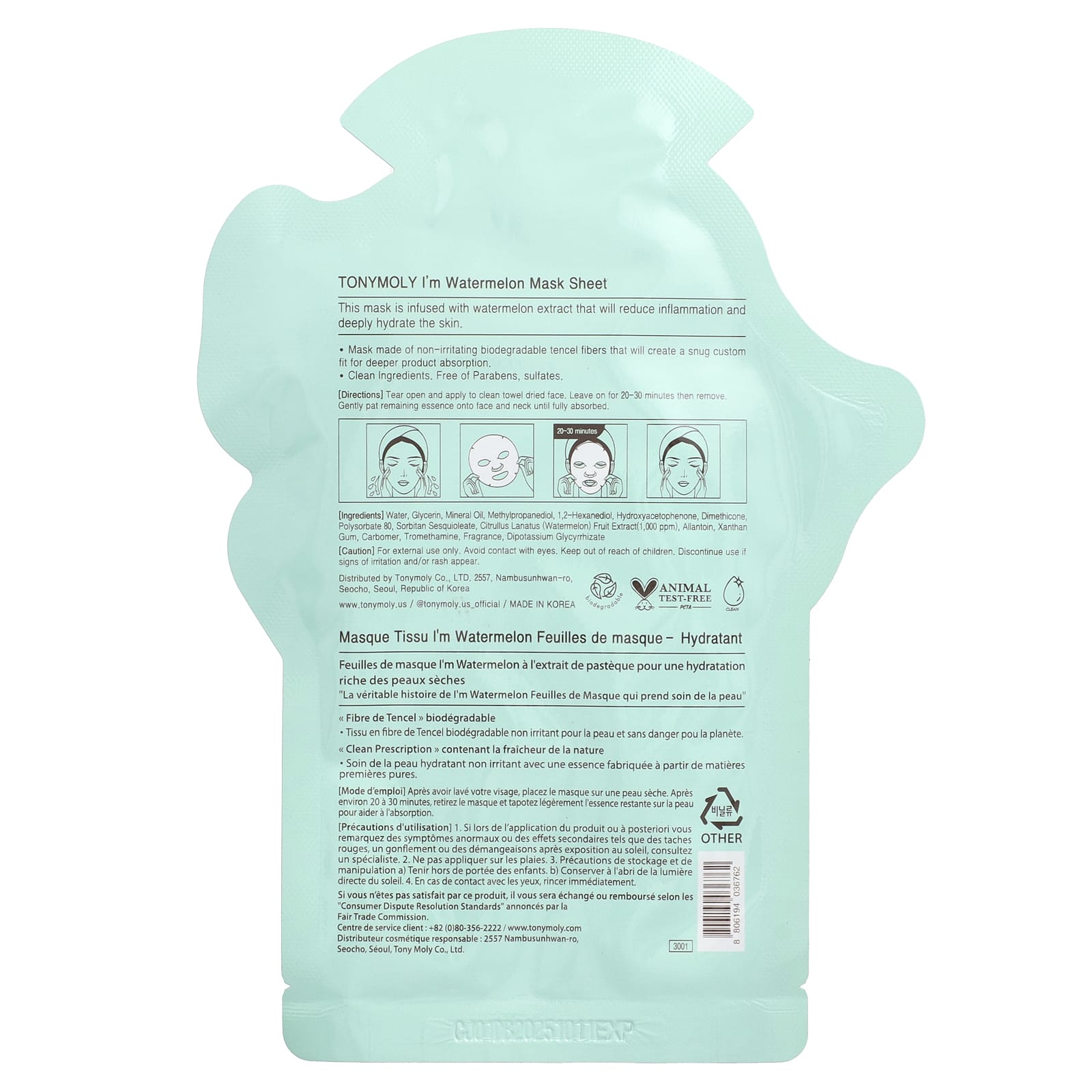 TonyMoly, I'm Watermelon, увлажняющая тканевая маска, 1 шт., 21 г (0,74 унции)