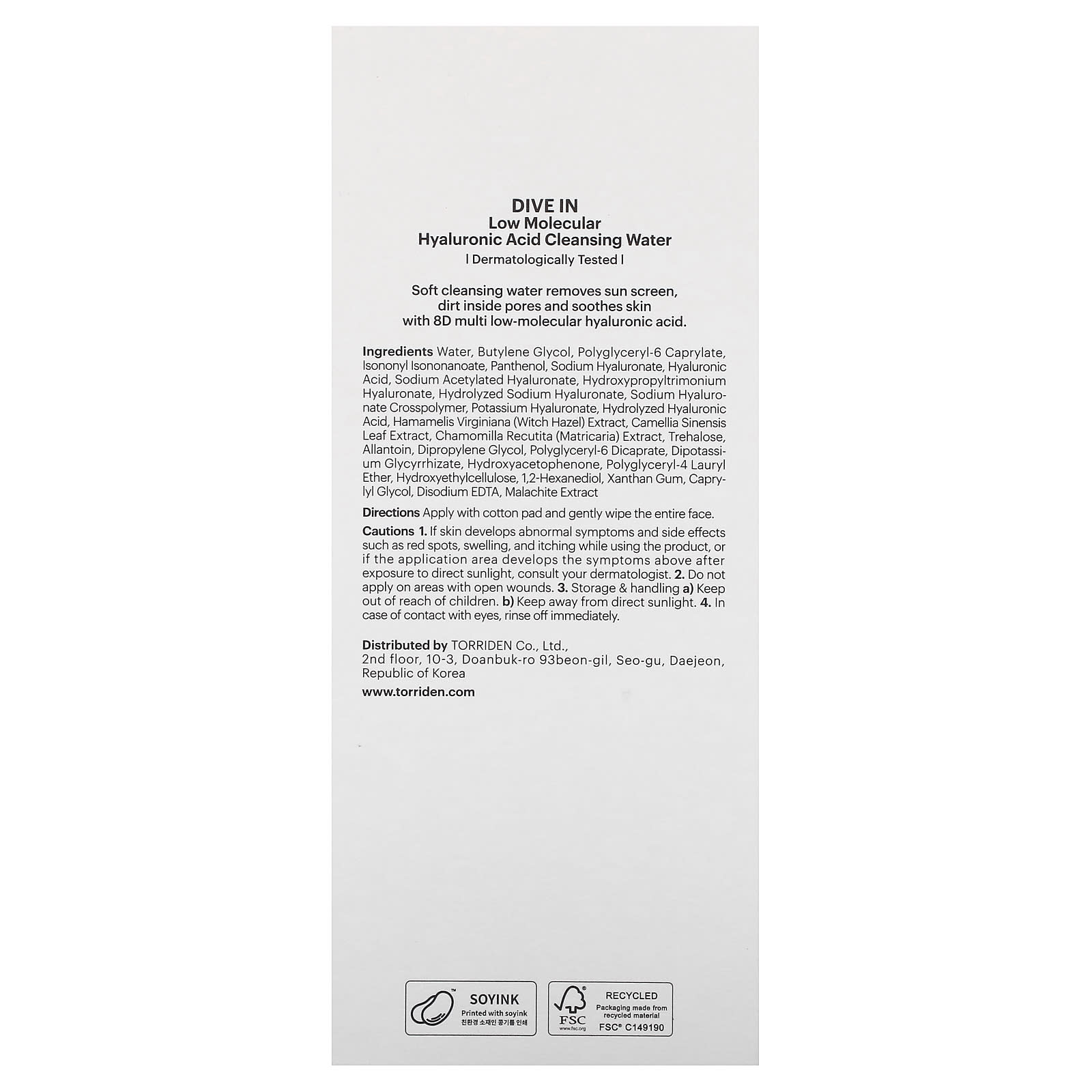 Мягкая очищающая вода удаляет солнцезащитный крем, грязь внутри пор и успокаивает кожу с помощью мультимолекулярной гиалуроновой кислоты 8D.