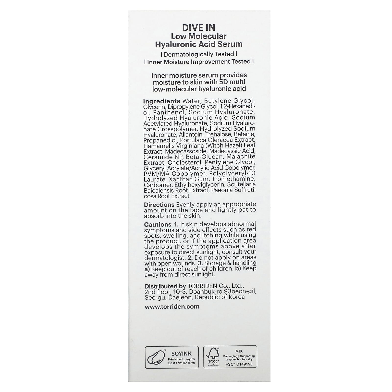 Вода, бутиленгликоль, глицерин, дипропиленгликоль, 1,2-гександиол, пантенол, гиалуронат натрия, гидролизованная гиалуроновая кислота, ацетилированный гиалуронат натрия, кроссполимер гиалуроната натрия, гидролизованный гиалуронат натрия, аллантоин, трегалоза, бетаин, пропандиол, экстракт портулака огородного (Portulaca oleracea), экстракт листьев гамамелиса (Hamamelis virginiana), мадекассосид, мадекассовая кислота, керамид NP, бета-глюкан, экстракт малахита, холестерин, пентилен гликоль, сополимер глицерил акрилата/акриловой кислоты, ПВМ/МА сополимер, полиглицерил-10 лаурат, ксантановая камедь, трометамин, карбомер, этилгексилглицерин, экстракт корня шлемника (Scutellaria baicalensis), экстракт корня пиона (Paeonia suffruticosa).