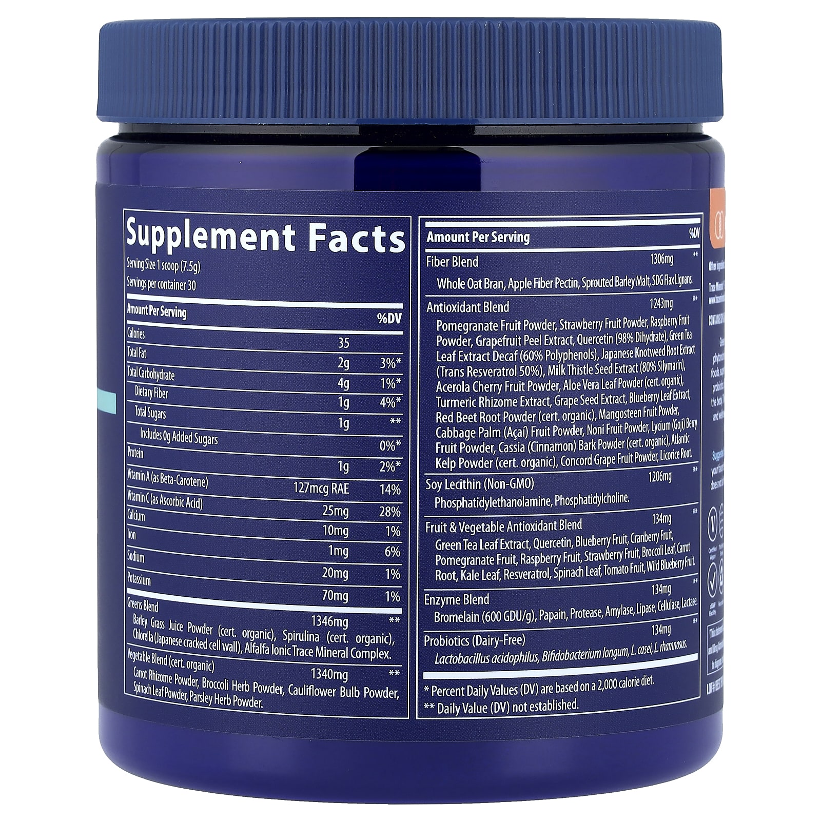 | Смесь антиоксидантов порошок из плодов граната, порошок из клубничных плодов, порошок из плодов малины, экстракт кожуры грейпфрута, кверцетин (98% дигидрата), экстракт листьев зеленого чая без кофеина (60% полифенолов), экстракт корня рейнутрии японской (транс ресвератрол 50%), экстракт семян расторопши ( 80% силимарина), порошок из плодов ацеролы, порошок из листьев алоэ вера (сертифицированный органический), экстракт корневища куркумы, экстракт виноградных косточек, экстракт листьев голубики, порошок из корнеплода красной свеклы (сертифицированный органический), порошок из плодов мангостана, пальма капусты (асаи) ) порошок из плодов, порошок из плодов нони, порошок из ягод годжи, порошок из коры кассии (корицы) (сертифицировано органическая), порошок из водорослей атлантических (сертифицированный органический), порошок из плодов винограда «конкорд», корень солодки. | 1243 мг | ** |