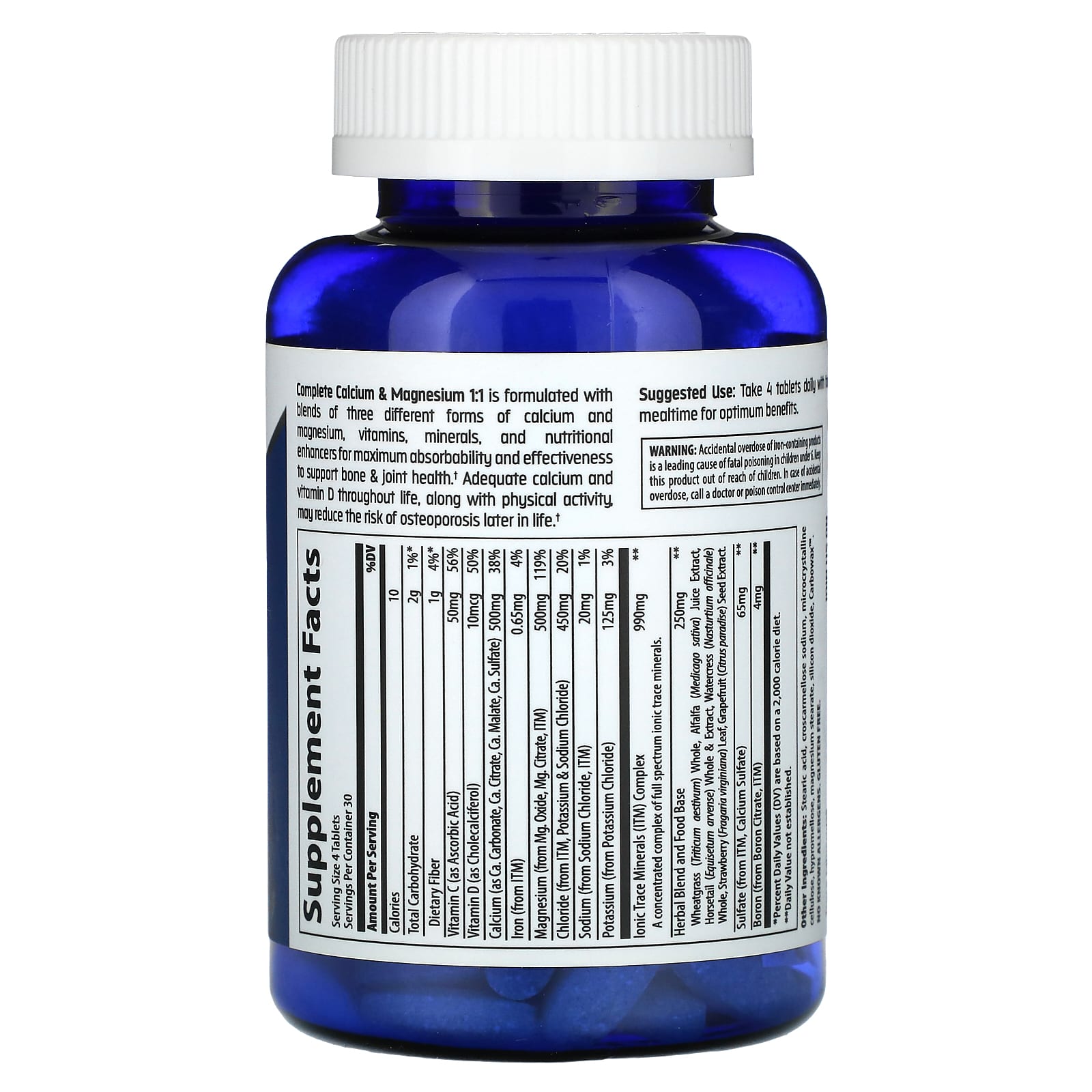 Полноценный кальций и магний 1:1 содержит смеси трех различных форм кальция и магния, витаминов, минералов и усилителей питательных веществ, обеспечивающих максимальную усвояемость и эффективность, чтобы поддерживать здоровье костей и суставов. Регулярное употребление достаточного количества кальция и витамина D в сочетании с физической активностью может снизить риск развития остеопороза в более зрелом возрасте.