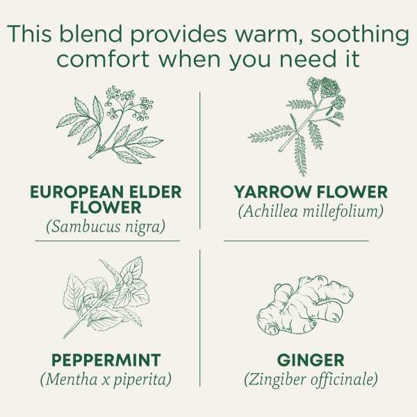 Когда приходит простуда, мы всегда обращаемся к травам для укрепления иммунитета, таким как бузина. Этот проверенный временем чай, собранный экологичным способом в нетронутых диких местах Европы и смешанный с тысячелистником и перечной мятой, уже более четырех десятилетий обеспечивает хорошее самочувствие в зимнее время. Пейте в течение всего дня.
