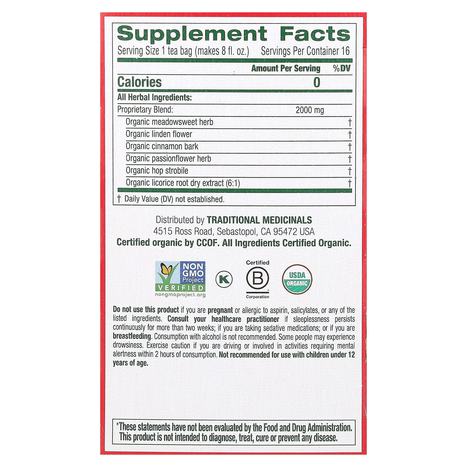 Не используйте этот продукт, если вы беременны или страдаете аллергией на аспирин, салицилаты или любой из перечисленных ингредиентов. Проконсультируйтесь с лечащим врачом, если бессонница сохраняется более двух недель; во время приема седативных препаратов; если вы кормите грудью. Не рекомендуется запивать алкоголем. У некоторых людей продукт может вызвать диарею. Соблюдайте осторожность, если вы управляете автомобилем или занимаетесь деятельностью, требующей умственной активности, в течение 2 часов после приема. Не рекомендовано к употреблению детьми младше 12 лет.