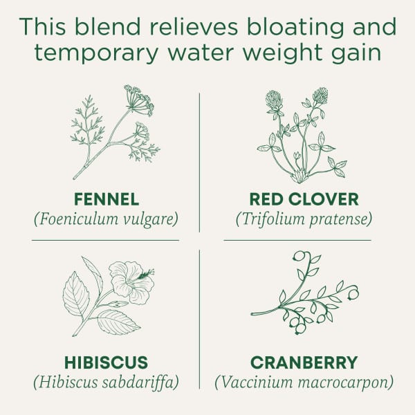 Чтобы облегчить дискомфорт, связанный с задержкой воды, травники используют мочегонные травы, такие как фенхель. Этот чай, смешанный с дополнительными травами, такими как красный клевер и тесак, и высоким содержанием натуральных эфирных масел, снимает неприятное вздутие живота, чтобы держать вас в руках.