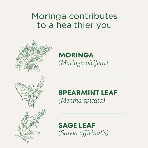 Аюрведические целители используют морингу, также известную как «Чудо-дерево», уже более 3000 лет из-за его многочисленных преимуществ. Моринга произрастает в субгималайских регионах Индии и Непала. Мы смешиваем его с шалфеем и мятой для освежающего мятного эффекта, который идеально подходит для повседневной поддержки.