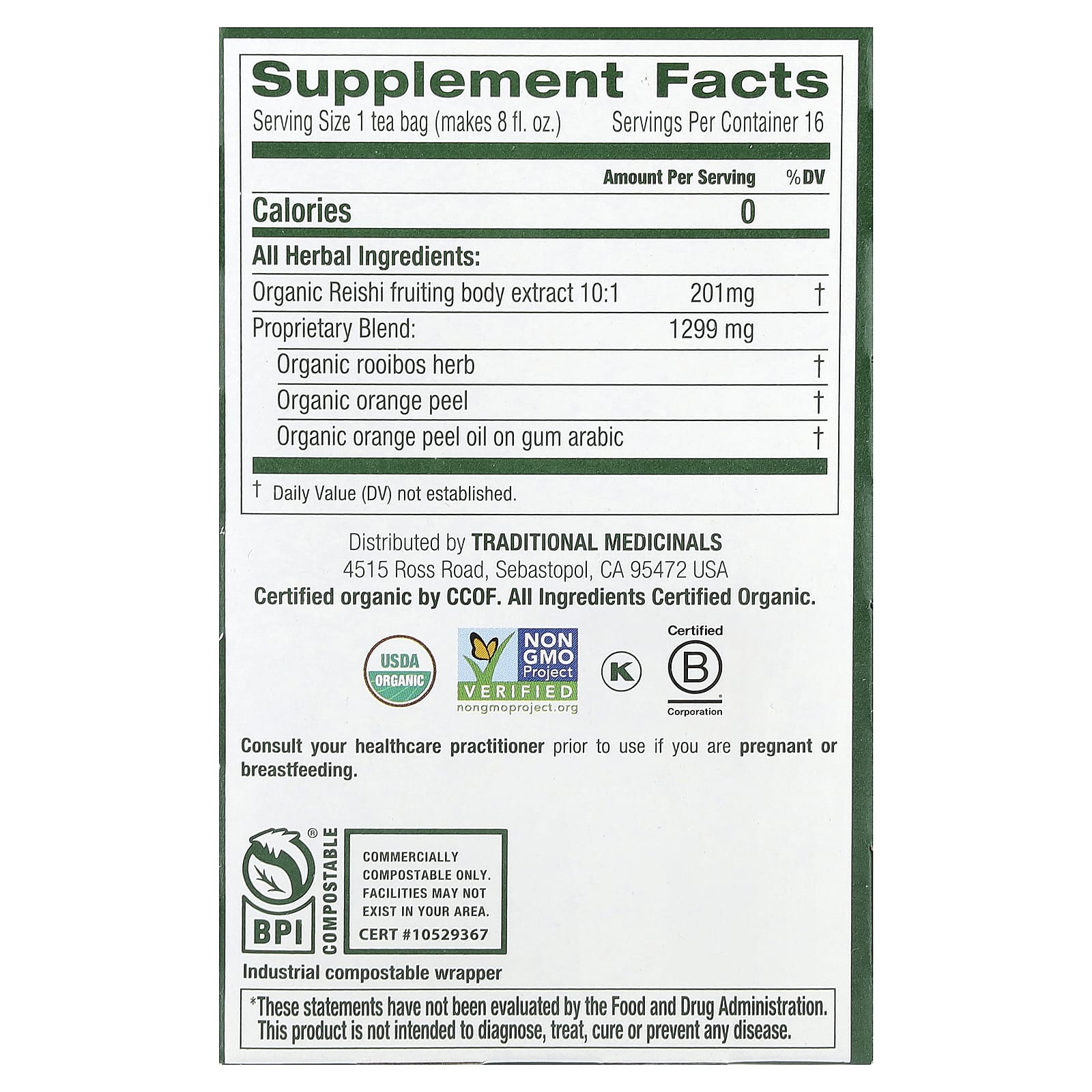 | Размер порции: 1 чайный пакетик (240 мл (8 жидк. унций)) | ||