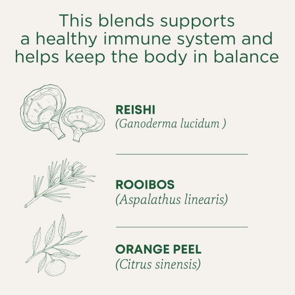 Рейши, известный в Азии уже 4000 лет как «гриб бессмертия», на Западе становится все более популярным благодаря своей способности поддерживать иммунную систему и помогать поддерживать баланс в организме. Мы создали эту сладкую цитрусовую смесь из ройбуша и апельсиновой цедры, чтобы поддержать здоровье иммунной системы.