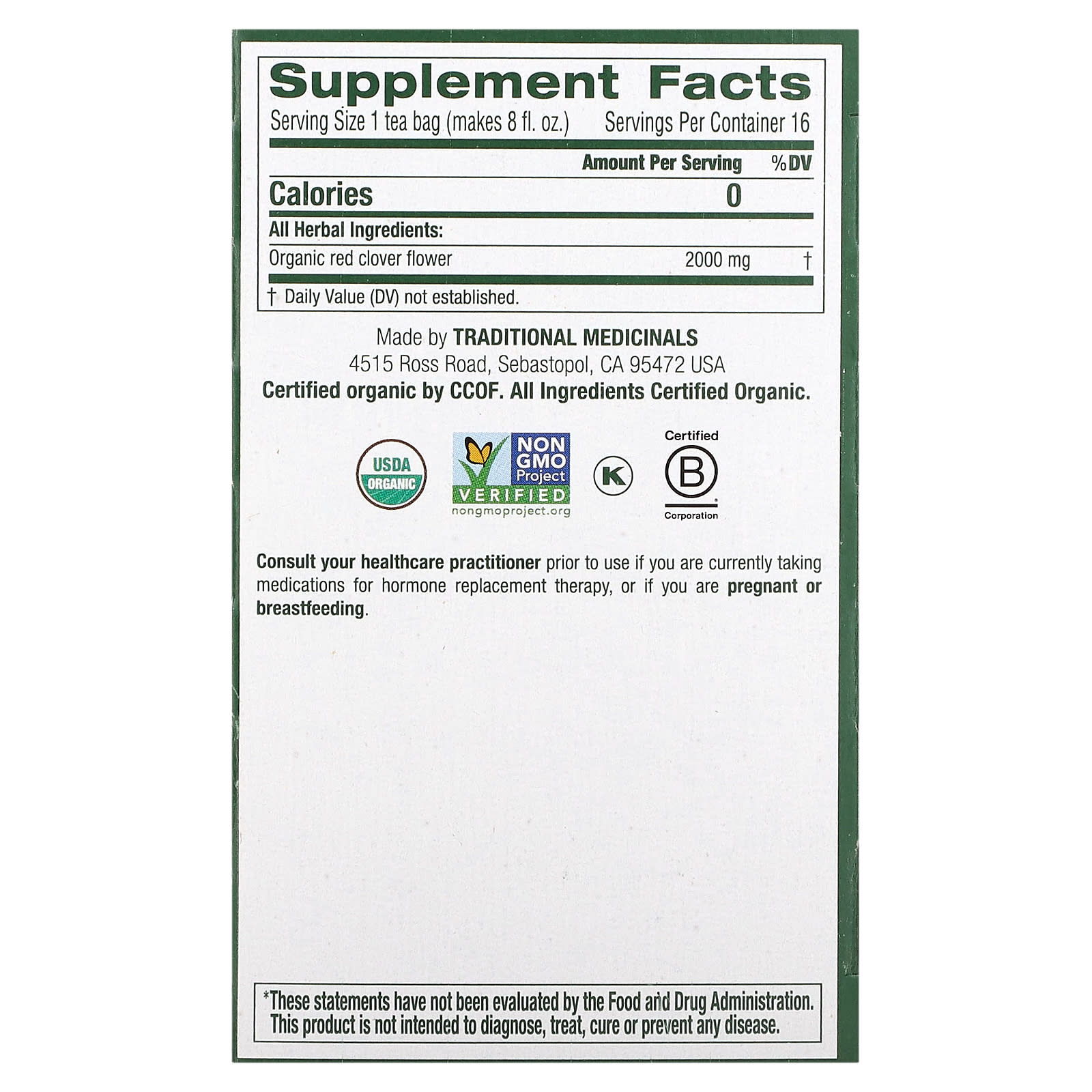 | Размер порции: 1 чайный пакетик (прибл. на 240 мл [8 жидк. унций]) | ||