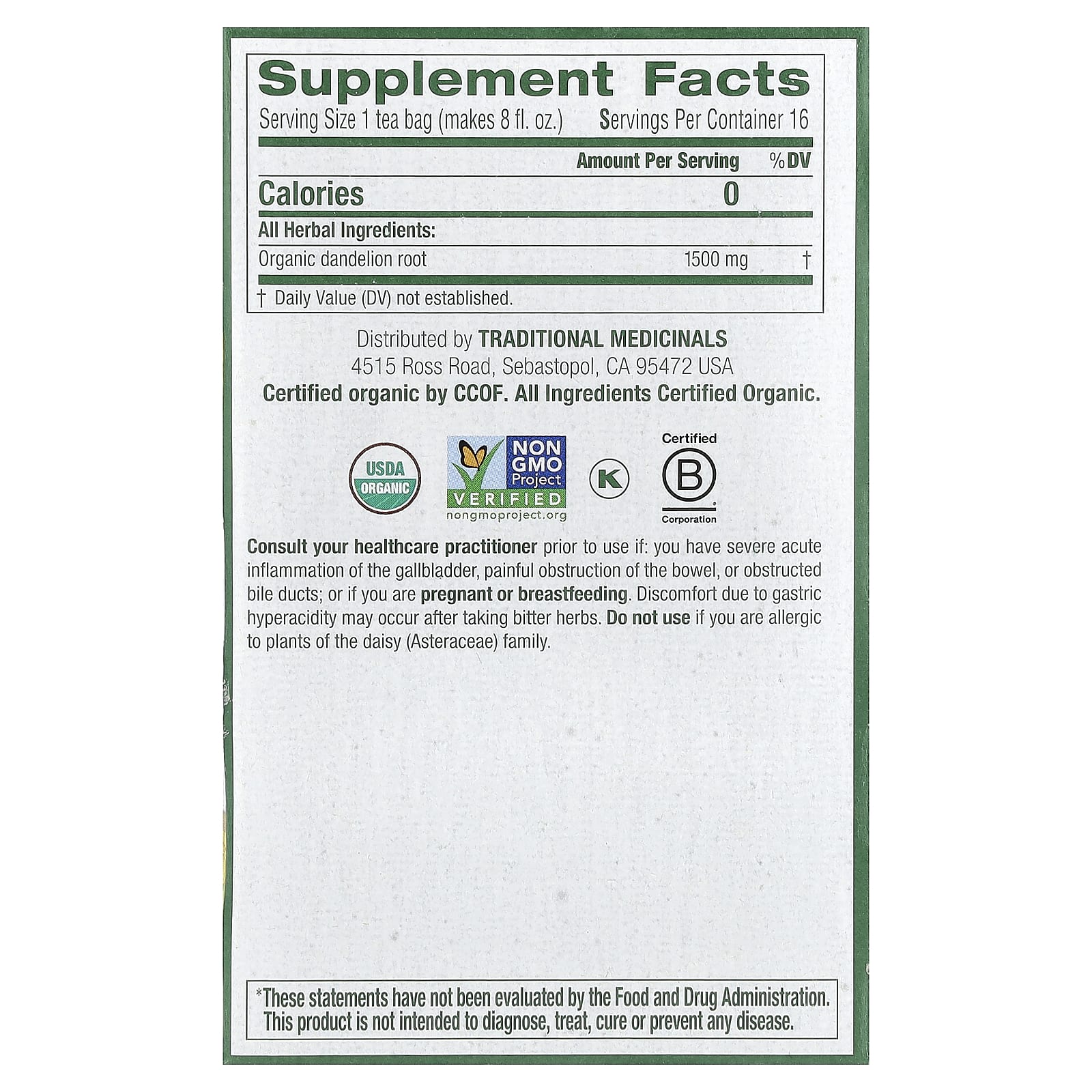 | Размер порции: 1 чайный пакетик (прибл. на 240 мл или 8 жидк. унций) | ||