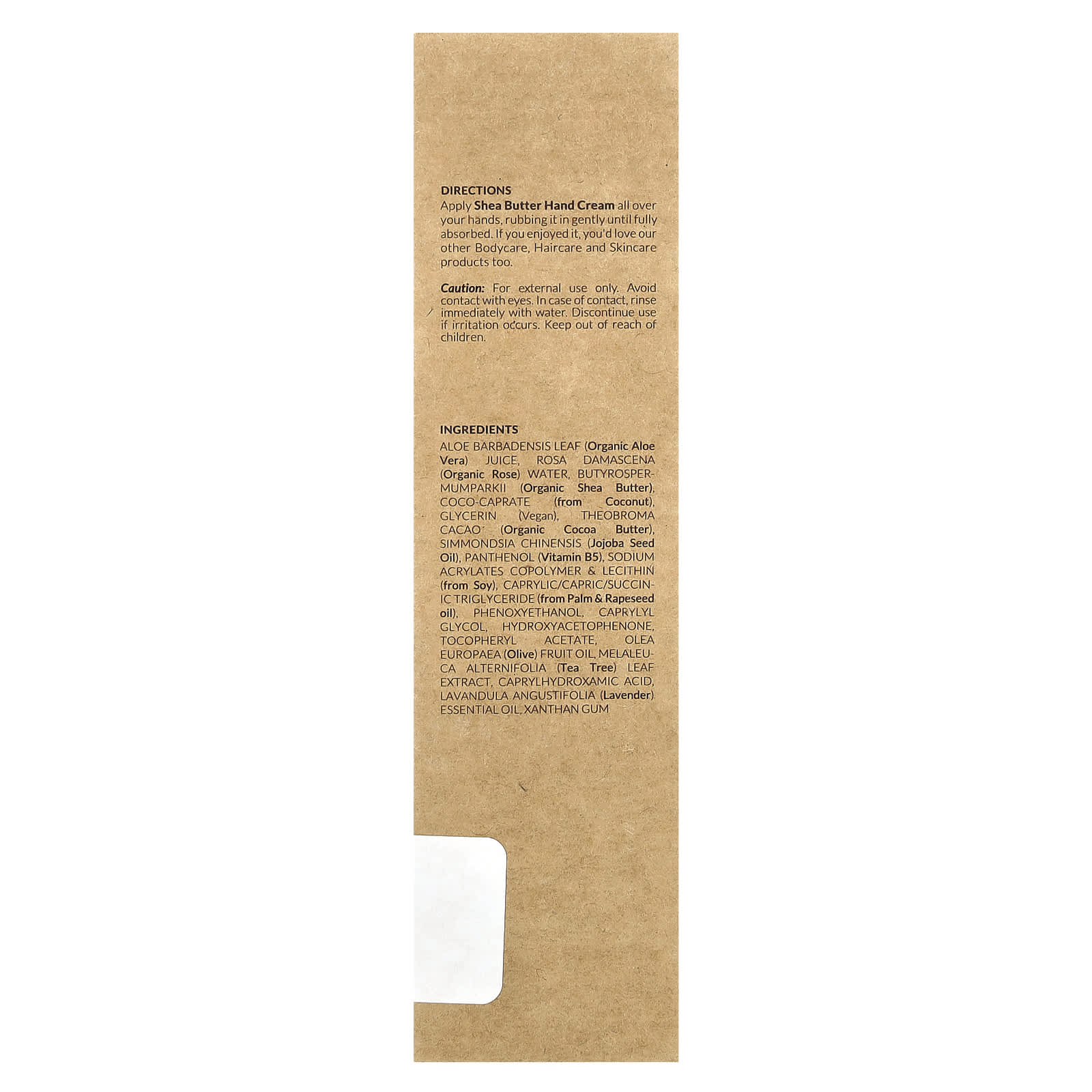 Очищенная вода, органическое масло ши (Butyrospermum parkii), кококапрат (из кокоса), глицерин (растительного происхождения), органическое какао-масло (Theobroma cacao), масло семян жожоба (Simmondsia chinensis), пантенол (витамин B5), сополимер акрилатов натрия и лецитин (из сои), каприловый/каприновый/янтарный триглицерид (из пальмового и рапсового масла), феноксиэтанол, каприлилгликоль, токоферилацетат, эфирное масло лаванды (Lavandula angustifolia), гидроксиацетофенон, каприлгидроксаминовая кислота, ксантановая камедь, экстракт листьев чайного дерева (Melaleuca alternifolia), оливковое масло (Olea europaea), сок листьев органического алоэ вера (Aloe barbadensis), органическая розовая вода (Rosa damascena).