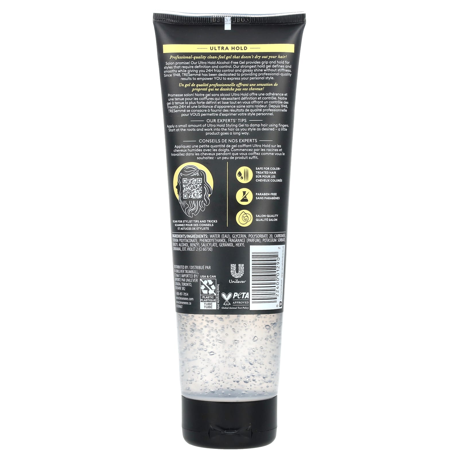 Салон обещает! Наш гель без спирта для ультрафиксации обеспечивает фиксацию и фиксацию для укладки, которая требует четкого оформления и контроля. Наш гель самой сильной фиксации подчеркивает и разглаживает волосы, обеспечивая контроль над пушением в течение 24 часов и глянцевый блеск без скованности. С 1948 года TRESemmé стремится предоставлять результаты профессионального качества, чтобы вы могли самовыразиться в своем стиле.