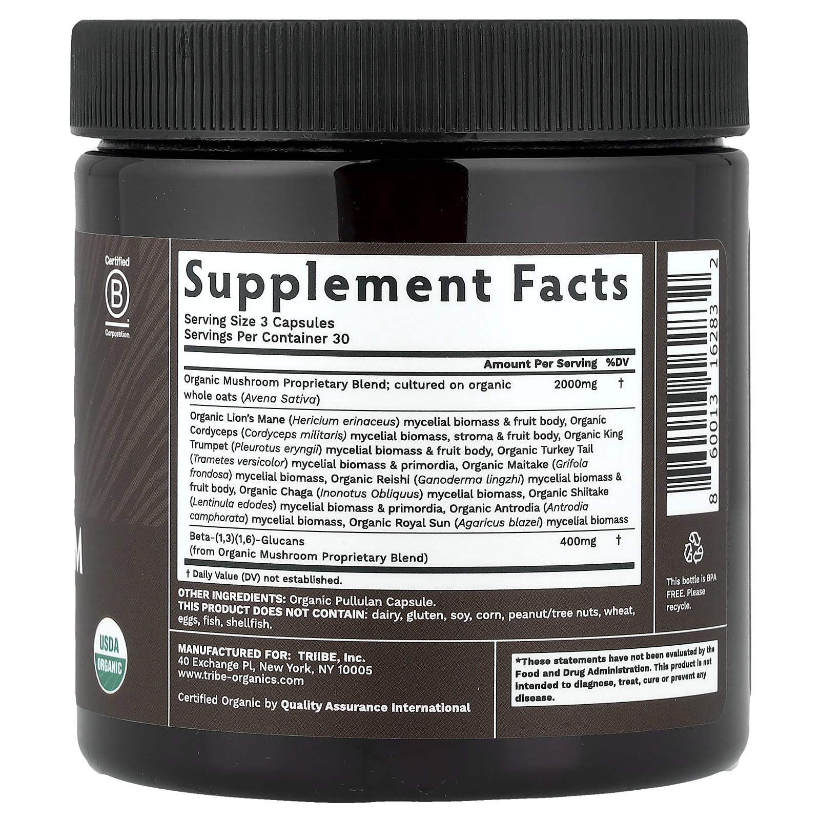 | запатентованная смесь органических грибов; выращено на органическом цельном овсе (Avena sativa) | 2000 мг | † |