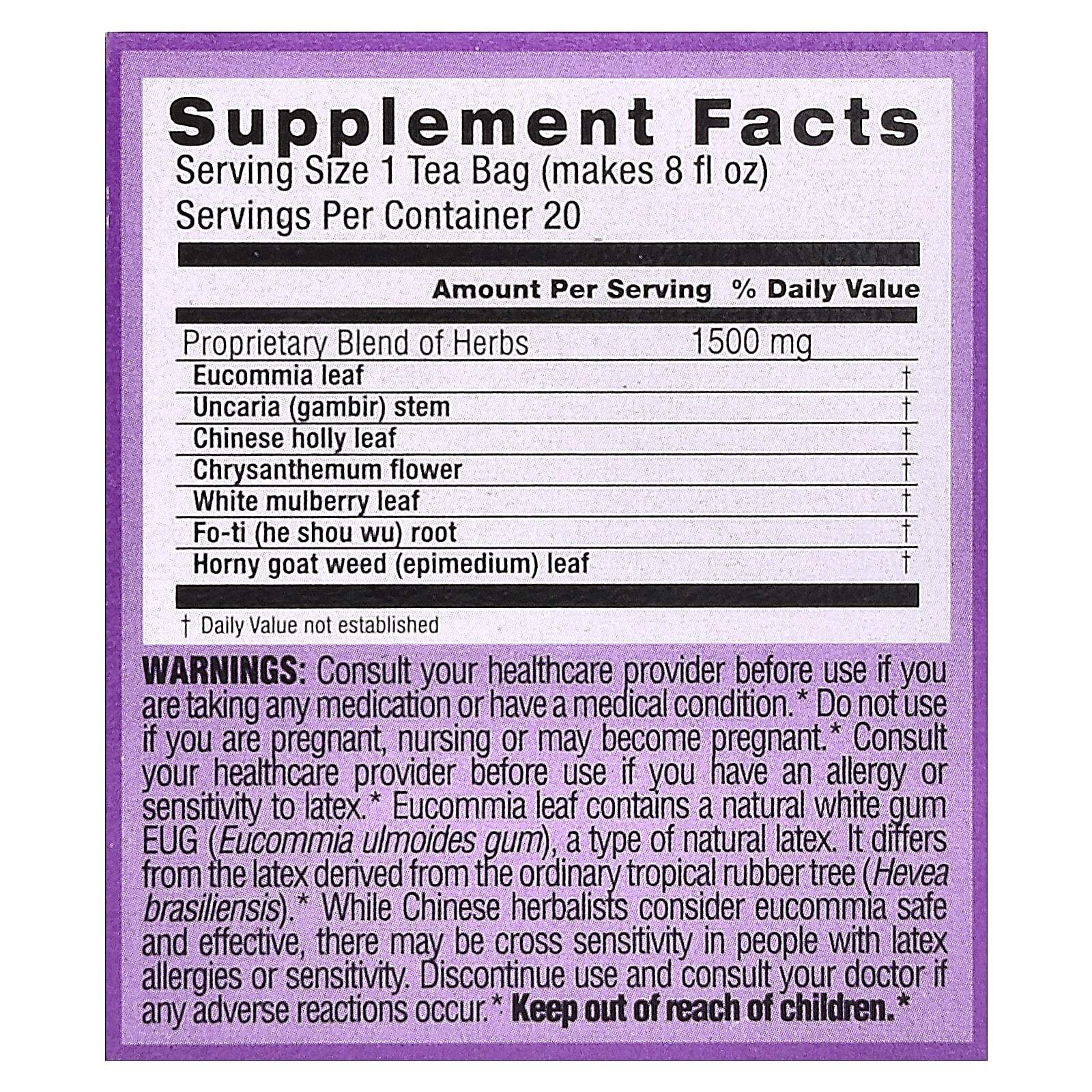 Было исследовано основное растение этой формулы, эукоммия, которая помогает поддерживать артериальное давление, которое уже находится в пределах нормы. Китайцы традиционно использовали травы в этом восхитительном чае с мягким вкусом, чтобы тонизировать и питать почки и печень. Считалось, что регулярное тонизирование почек и печени способствует крепкому здоровью и долголетию. Он также использовался для поддержки здоровой работы спины, мочевого пузыря и суставов. Пейте этот чай горячим или холодным.