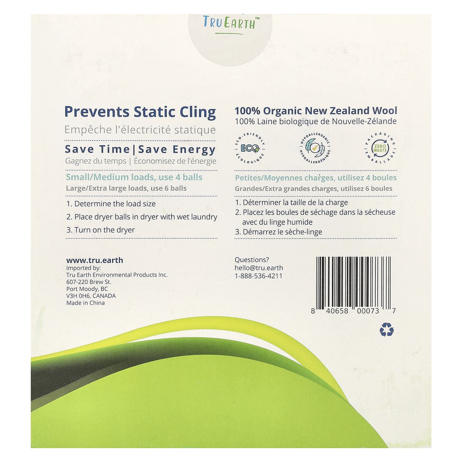 Шарики для сушки премиум-класса Tru Earth полностью натуральны, помогают смягчить одежду, сократить время сушки, снижая тем самым потребление энергии, и их можно использовать повторно. Эти шарики для сушки, изготовленные из 100% новозеландской шерсти премиального качества, смягчают и пушат одежду, простыни, одеяла, полотенца, куртки, детскую одежду и многое другое. Использование шариков для сушки также предотвращает скручивание и спутывание тяжелых вещей, что способствует более равномерной сушке одежды.