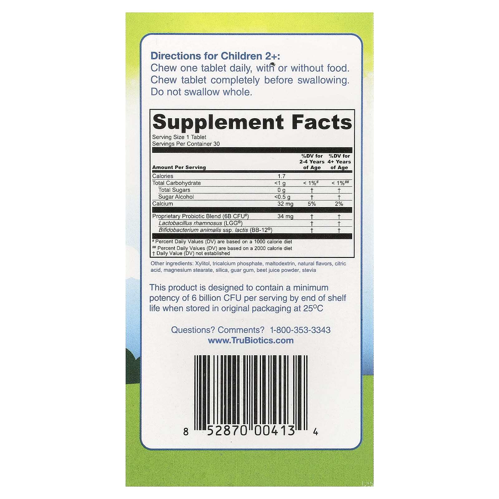 Вашим детям понравятся новые вкусные детские жевательные таблетки TruBiotics с клубникой! Это эксклюзивные жевательные таблетки для детей, содержащие два наиболее клинически изученных штамма пробиотиков в мире. Доказано, что это эффективное сочетание полезных бактерий помогает облегчить эпизодические расстройства пищеварения у детей, включая диарею, газообразование и вздутие живота, способствует здоровью дыхательных путей и полости рта, а также поддерживает развитие иммунной системы детей. Для непревзойденной поддержки пищеварительной и иммунной систем. Восстанавливайте микробиом вашего ребенка каждый день с помощью жевательных таблеток TruBiotics.