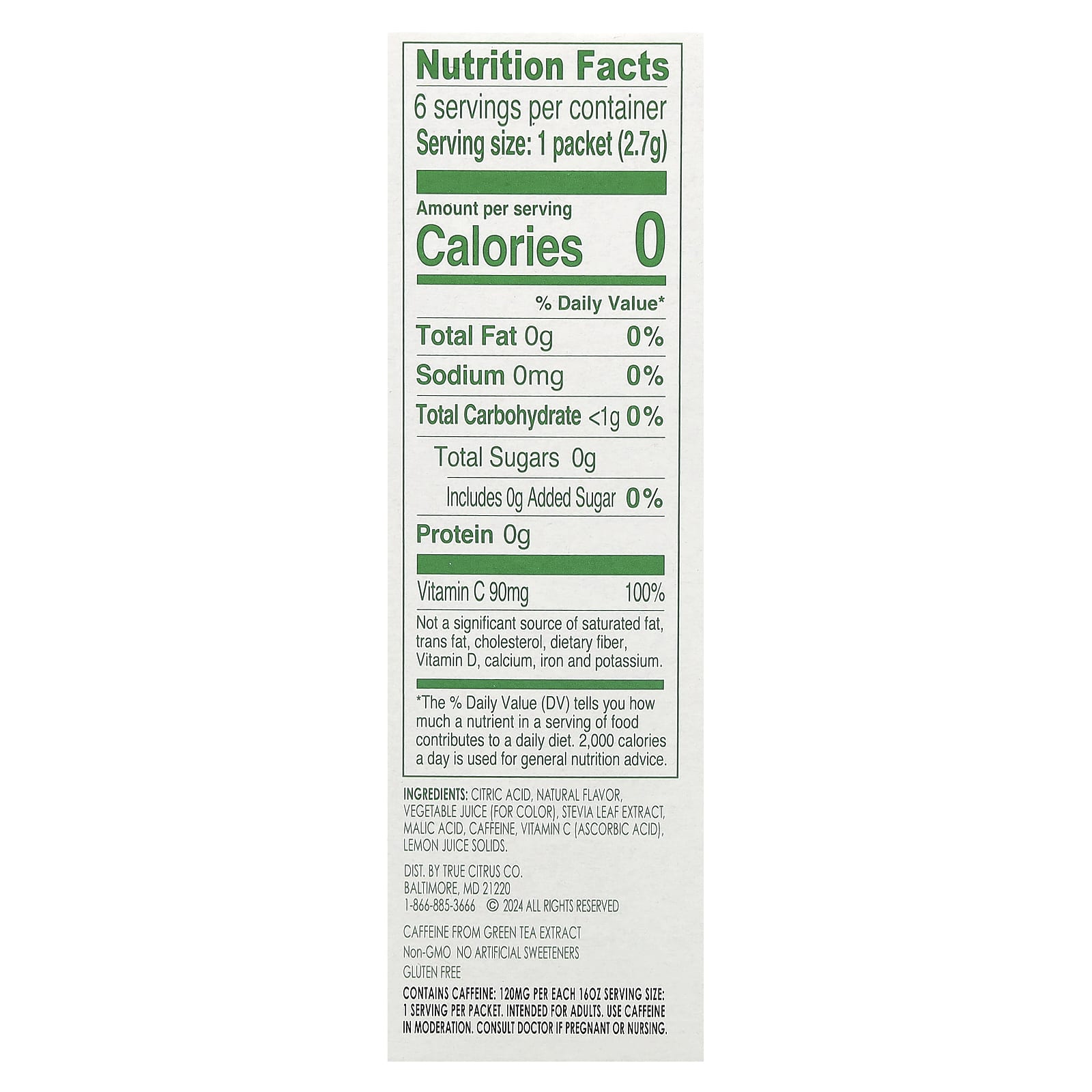 Лимонная кислота, натуральный ароматизатор, овощной сок (для цвета), экстракт листьев стевии, яблочная кислота, кофеин, аскорбиновая кислота (витамин C), сухие вещества лимонного сока.