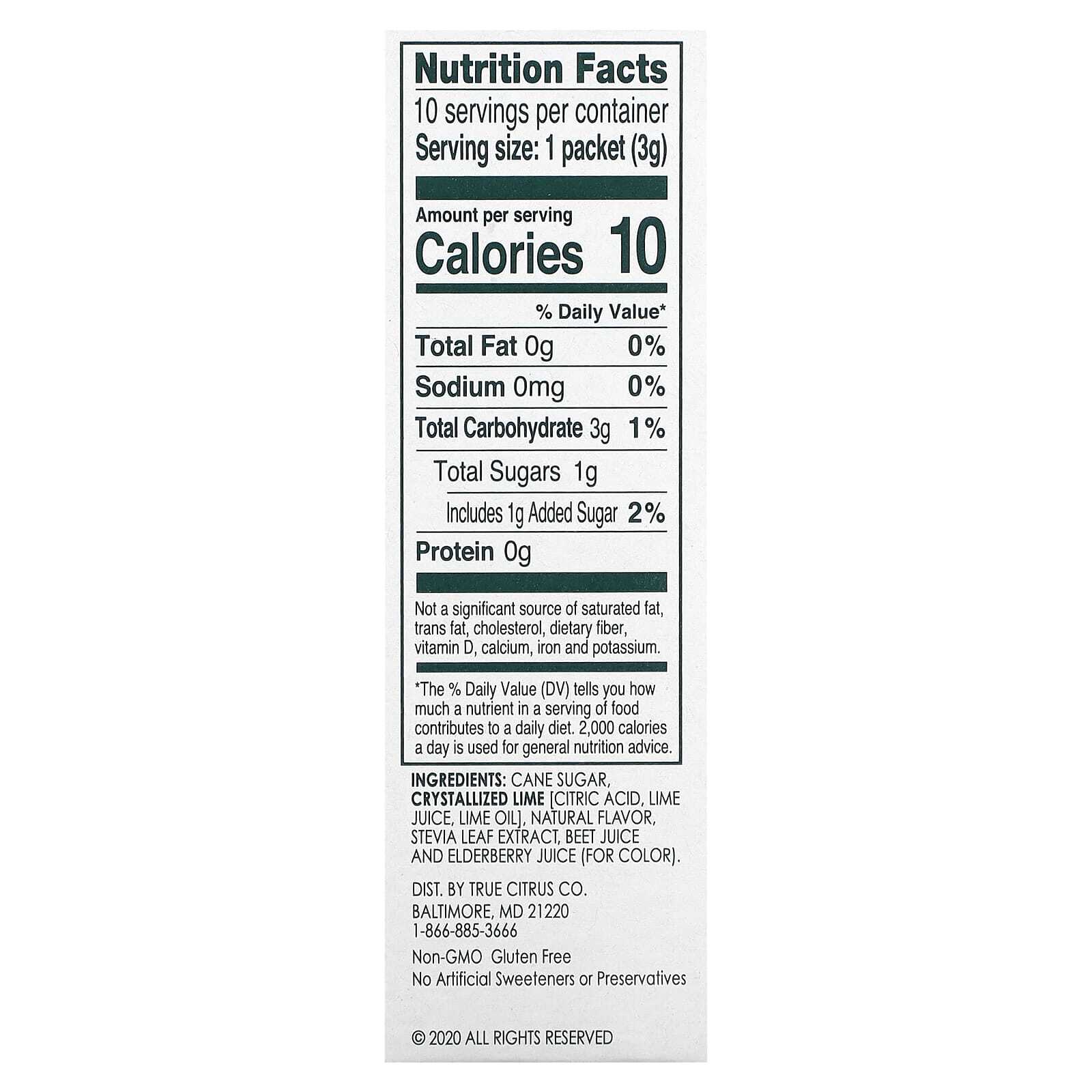 Тростниковый сахар, известь кристаллизованная (лимонная кислота, сок лайма, липовое масло), натуральный ароматизатор, экстракт листьев стевии, сок свеклы и сок бузины (для цвета).