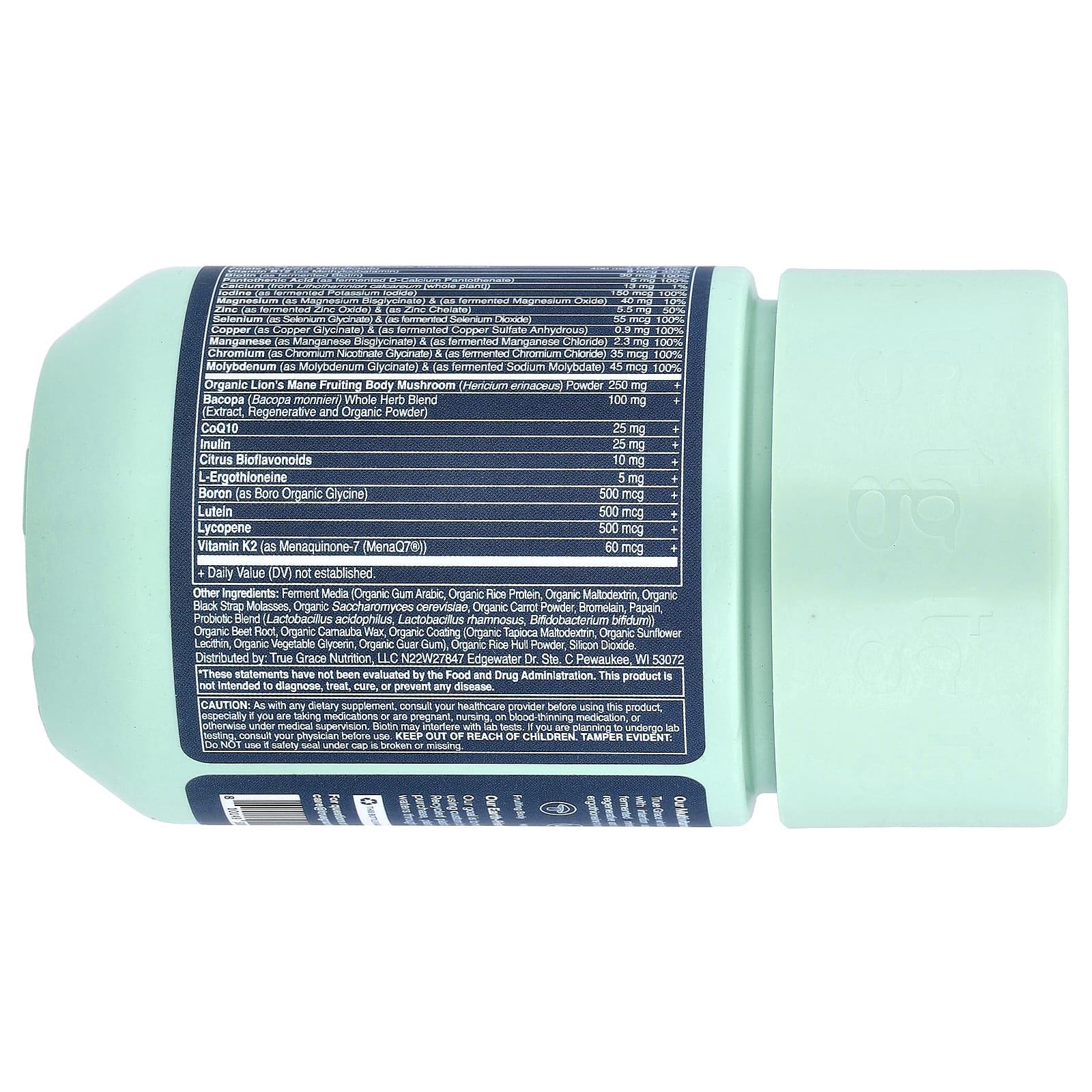 Мультивитамины на основе цельных продуктов True Grace разработаны с использованием ферментированных витаминов, хелатных и ферментированных минералов, органического лекарственного ежовика гребенчатого, восстанавливающей и органической бакопы, а также коэнзима Q10 и эрготионеина для поддержки клеточной энергии.