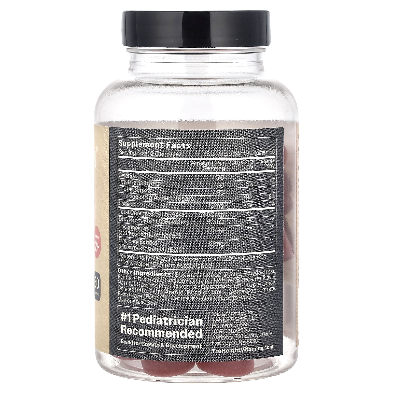 Одна порция жевательных таблеток для развития мозга для детей содержит 57,5 мг омега-3 жирных кислот, 50 мг ДГК, 25 мг фосфолипидов и 10 мг экстракта сосновой коры. Эти ингредиенты в совокупности способствуют развитию мозга и когнитивных функций детей, поддерживая память, обучение и общее здоровье мозга, обеспечивая организм необходимыми питательными веществами, защищая от окислительного стресса и поддерживая нервные связи для улучшения умственной деятельности.