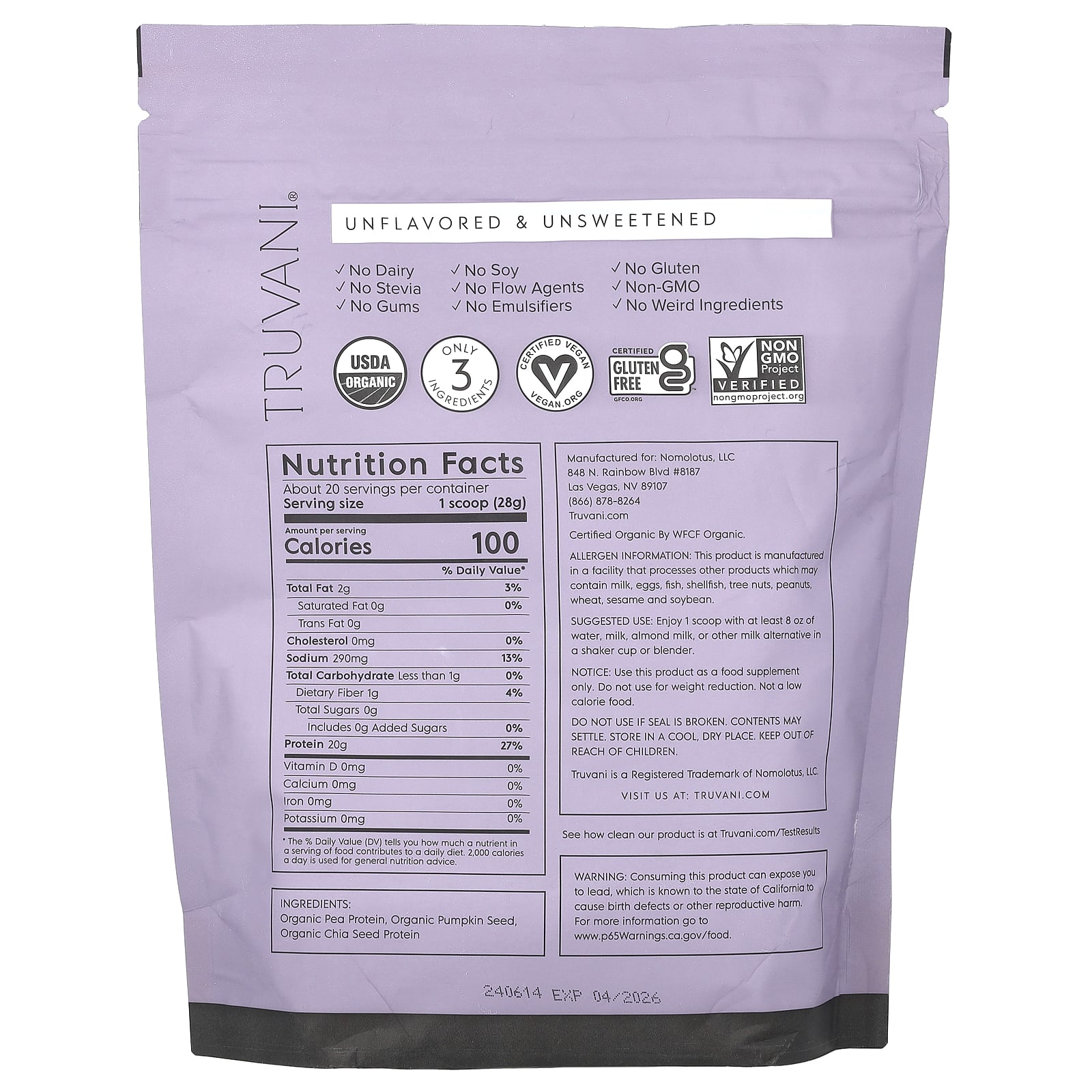 Наш новый неароматизированный протеин на растительной основе состоит всего из 3 простых ингредиентов: гороха, семян тыквы и семян чиа.