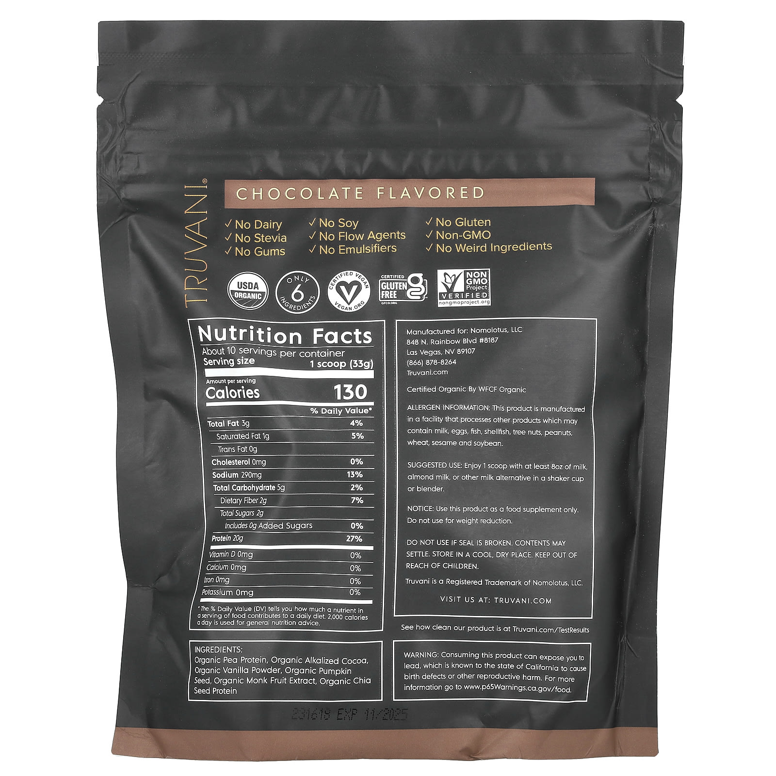 Органический гороховый белок, органическое подщелачиваемое какао, органический ванильный порошок, органические семена тыквы, органический экстракт архата, органический белок семян чиа.
