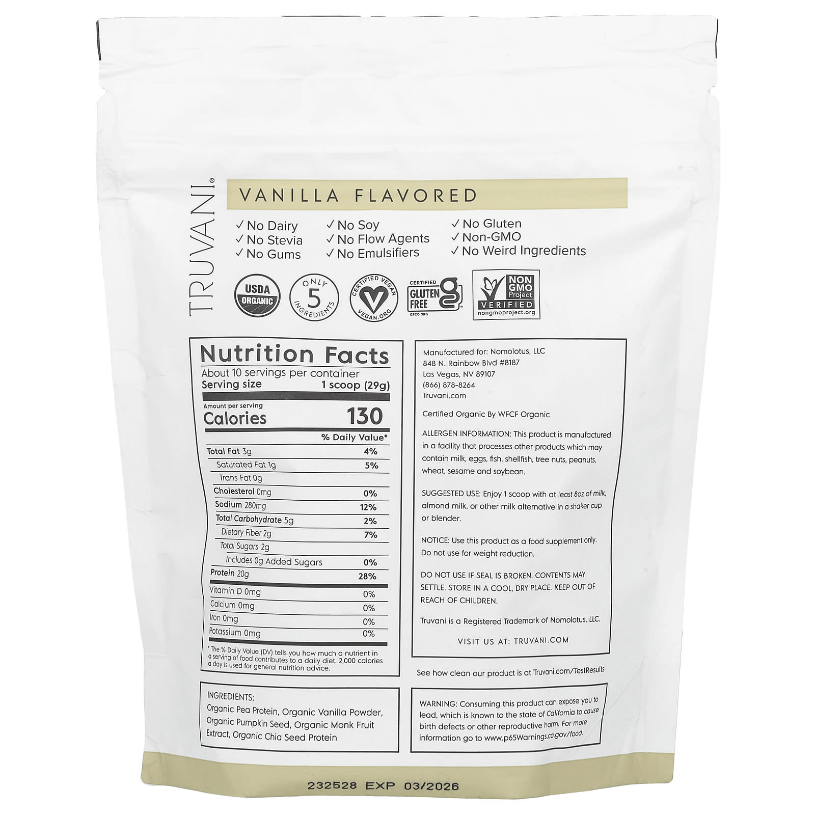 Truvani, Растительный протеин, ваниль, 297 г (0,65 фунта)