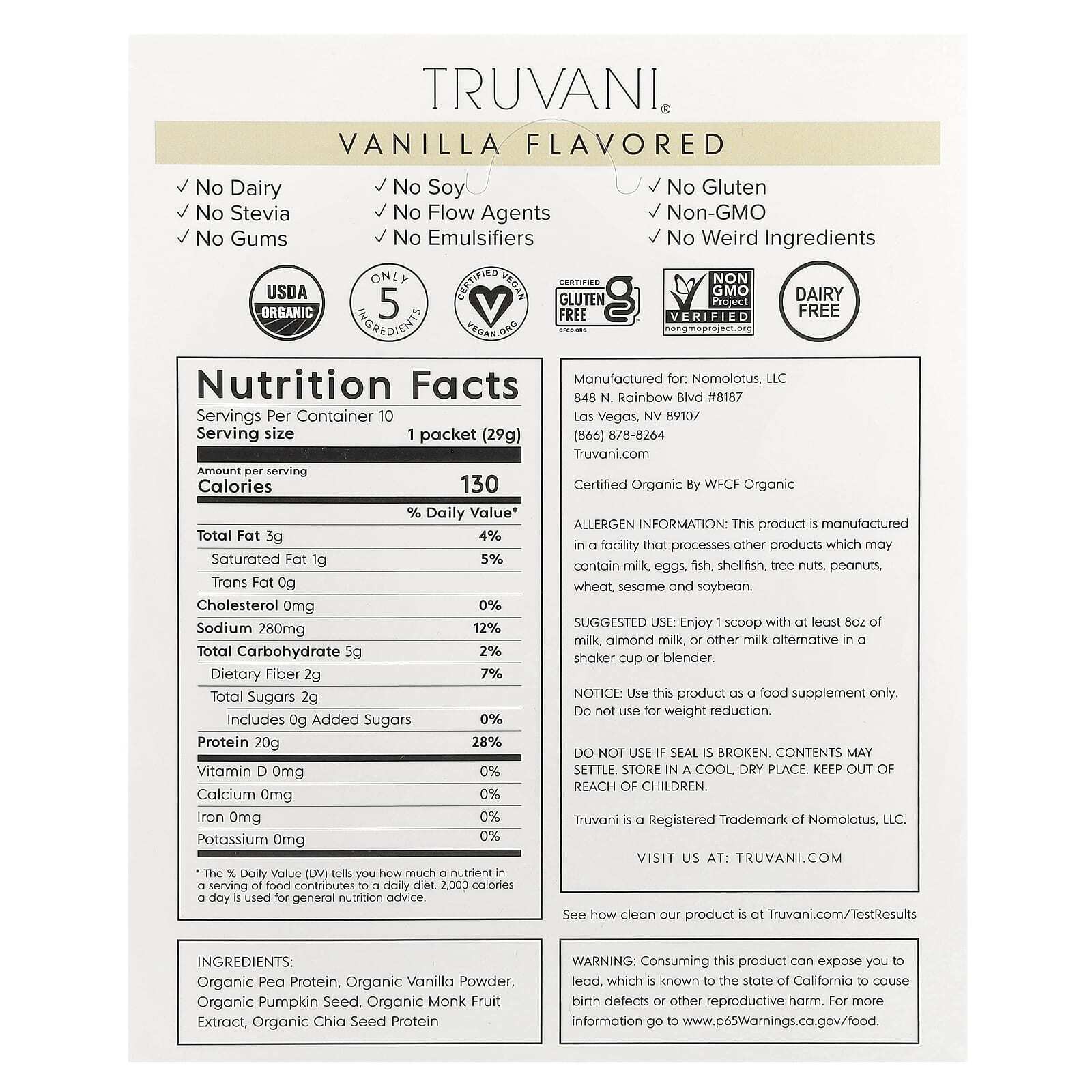 Органический гороховый белок, органический ванильный порошок, органические семена тыквы, органический экстракт архата, органический белок семян чиа.