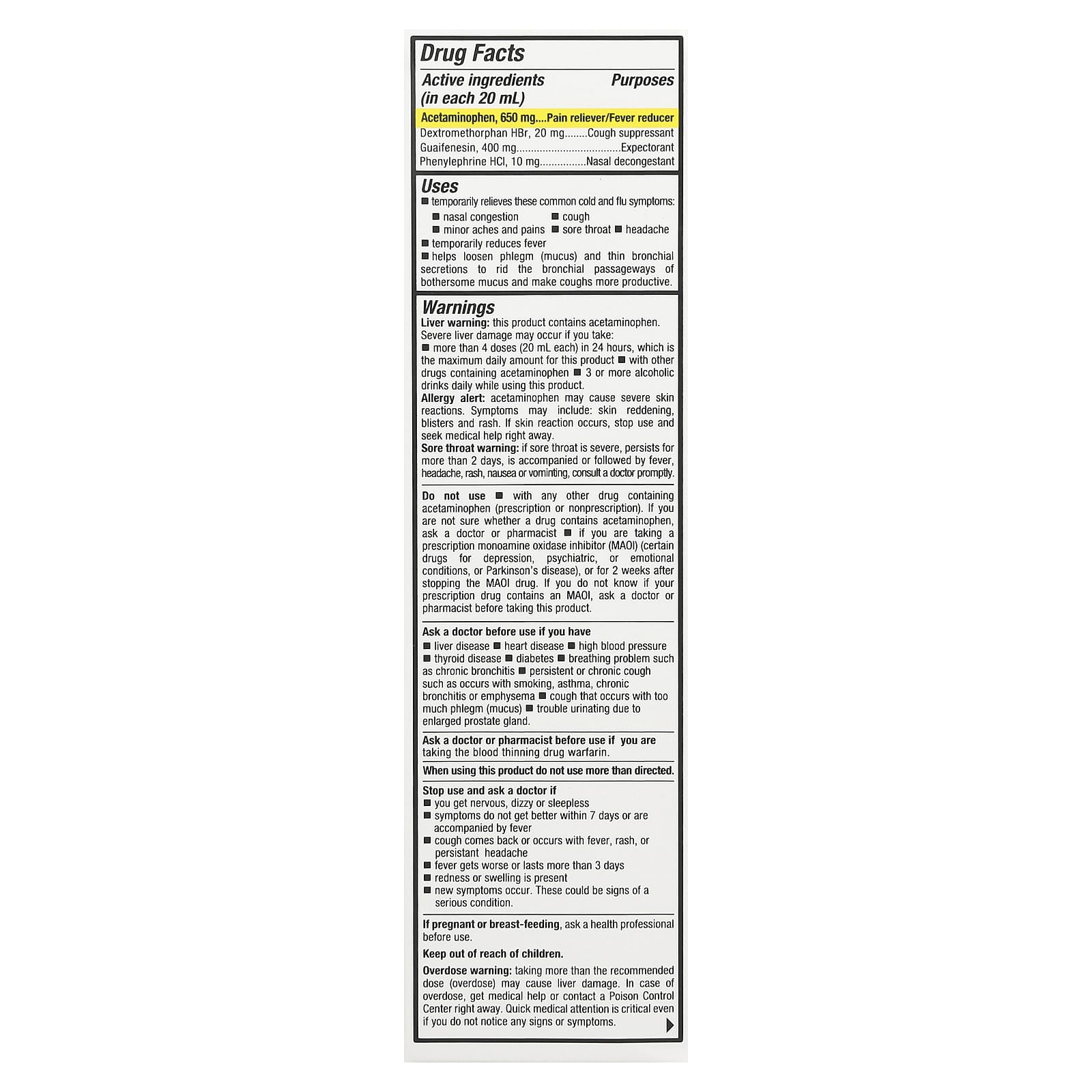 - ацетаминофен, декстрометорфан гидрохлорид, гвайфенезин, фенилэфрин гидрохлорид