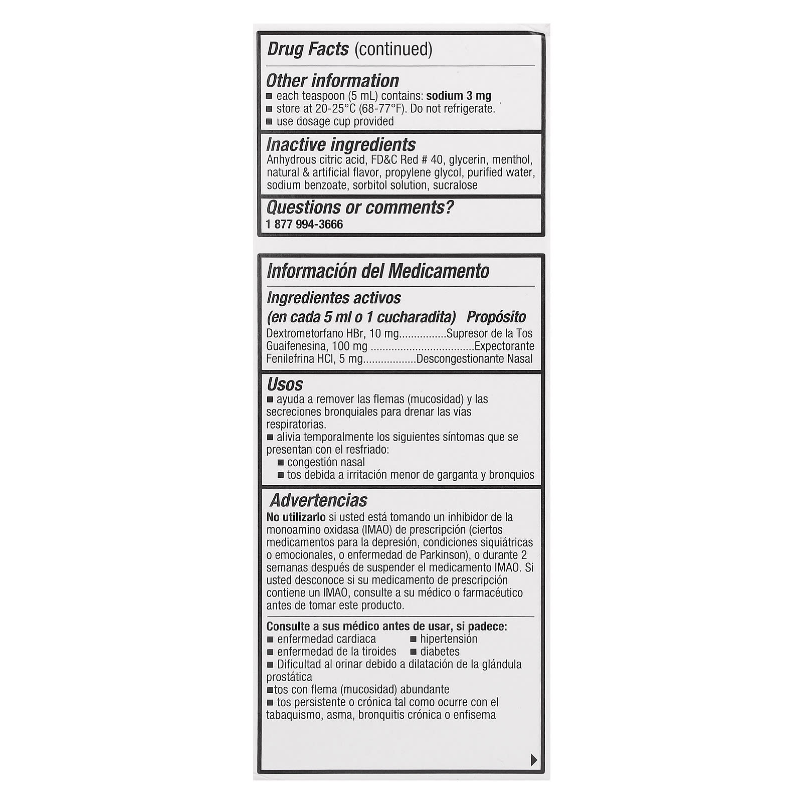 | Безводная лимонная кислота, краситель красный 40 FD&C, глицерин, ментол, натуральные и искусственные ароматизаторы, пропиленгликоль, очищенная вода, бензоат натрия, раствор сорбитола, сукралоза. Каждая чайная ложка (5 мл) содержит 3 мг натрия | |