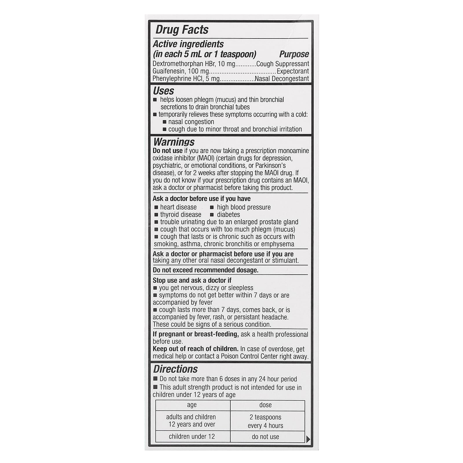 | Взрослые и дети от 12 лет и старше | 2 чайные ложки каждые 4 часа |