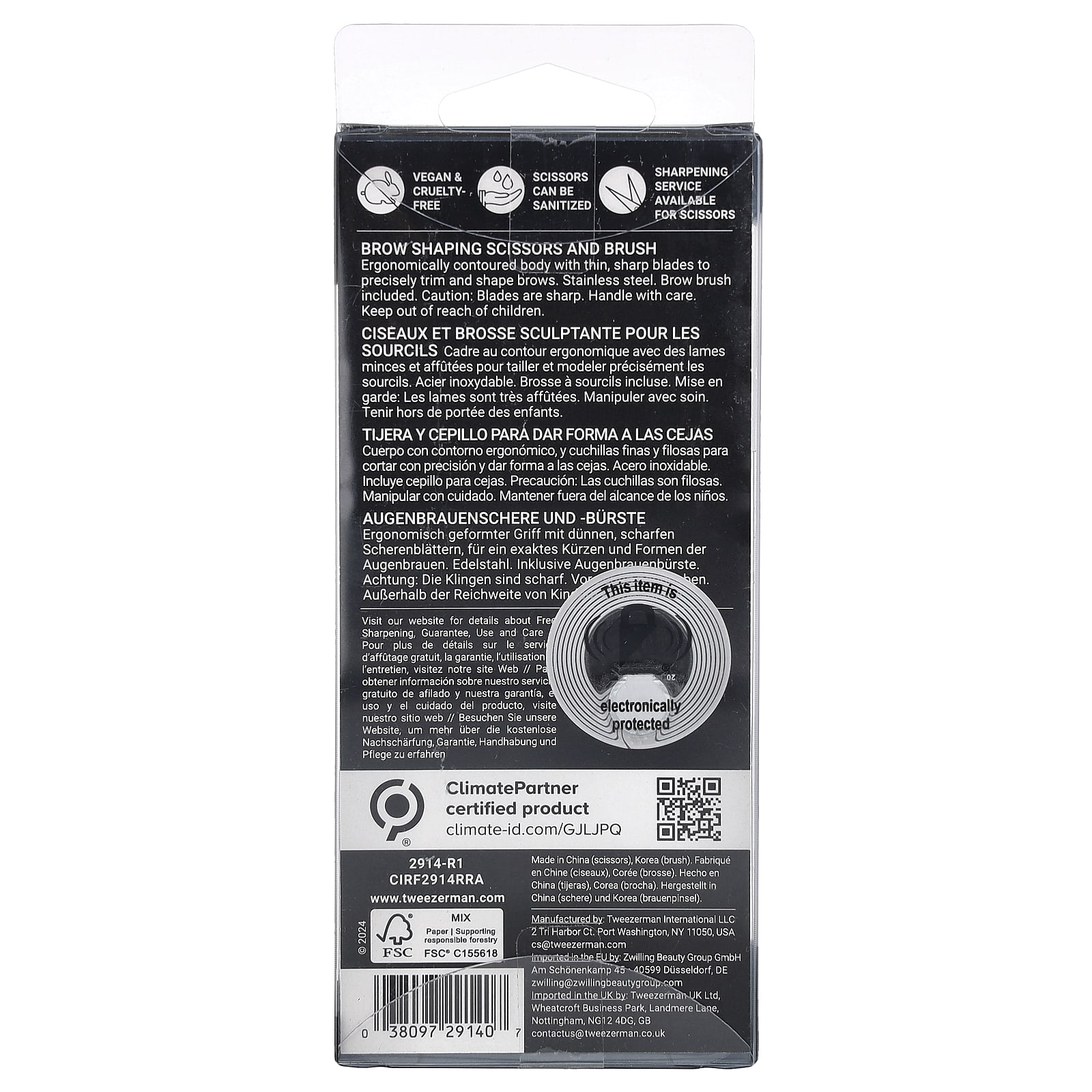 Эргономичный тело с тонкими острыми лезвиями для точного подчеркивания и придания формы бровям. Нерж. стали. Кисть для бровей в комплекте.