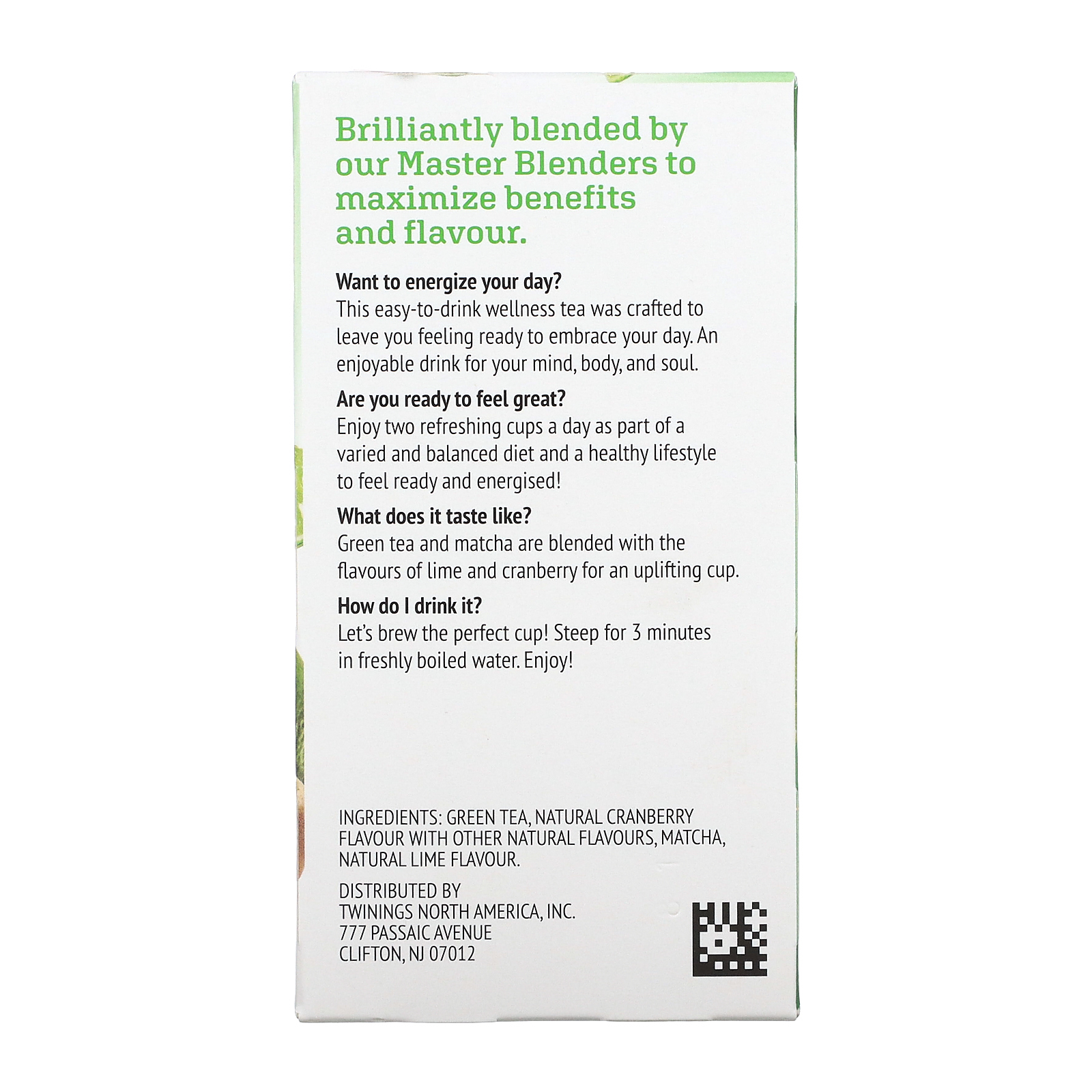Начните день с заряда энергии благодаря чашечке смеси зеленого чая и матча с ароматом клюквы и лайма.