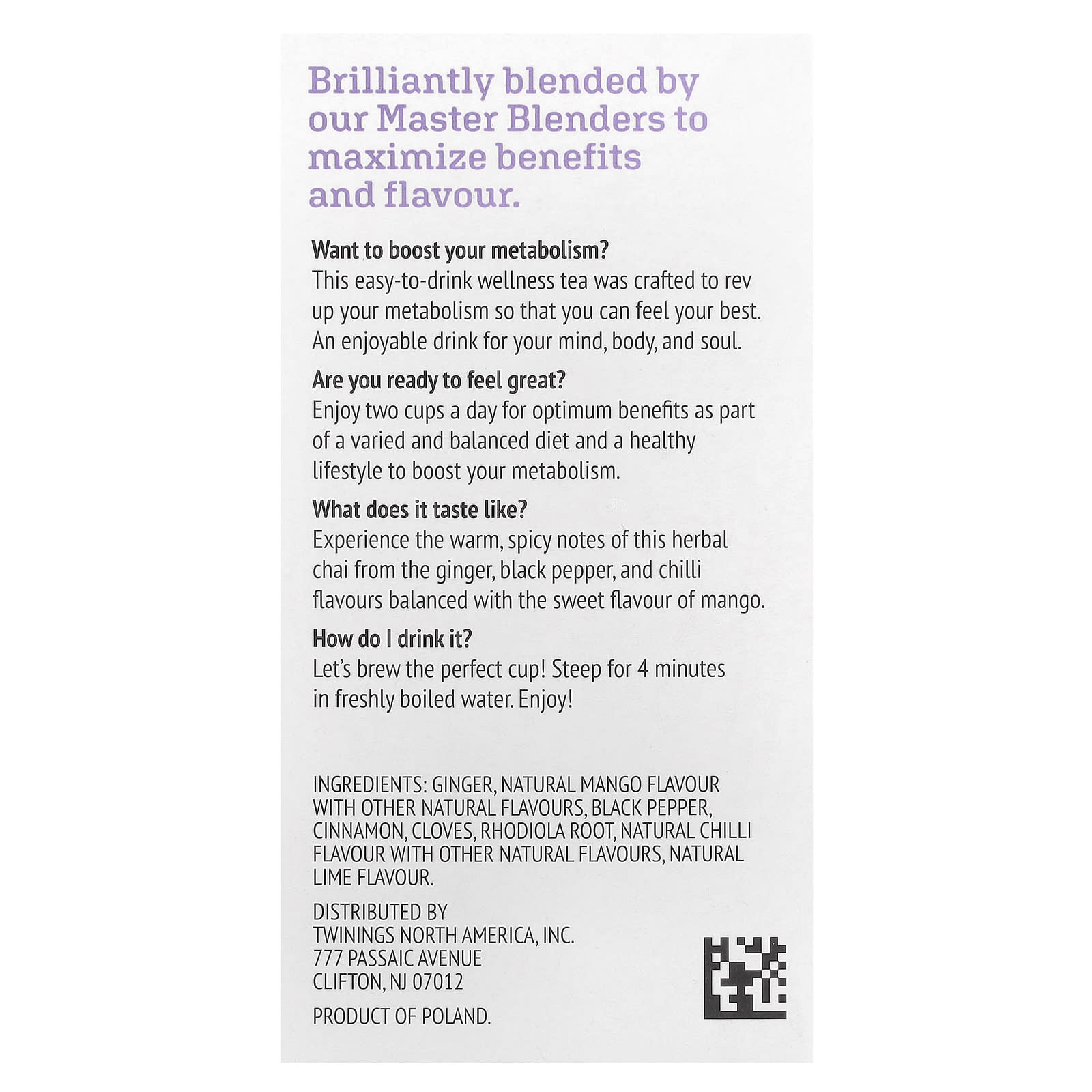 Почувствуйте теплые, пряные нотки этого травяного чая со вкусами имбиря, черного перца и чили, а также со сладким вкусом манго.