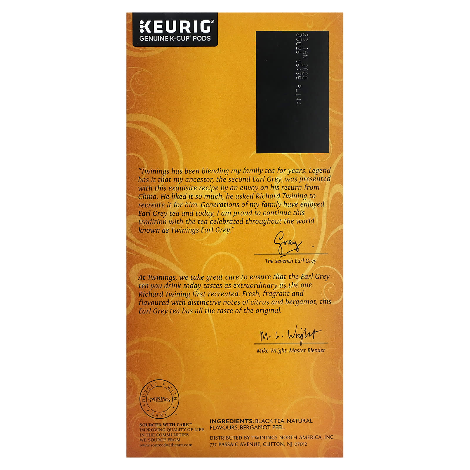 В Twinings мы делаем все возможное, чтобы чай «Эрл Грей», который вы пьете сегодня, был таким же необычным, как и тот, который впервые воссоздал Ричард Твайнинг. Свежий, ароматный и приправленный характерными нотками цитрусовых, этот чай Эрл Грей обладает всем оригинальным вкусом. - Майк Райт-мастер купажа
