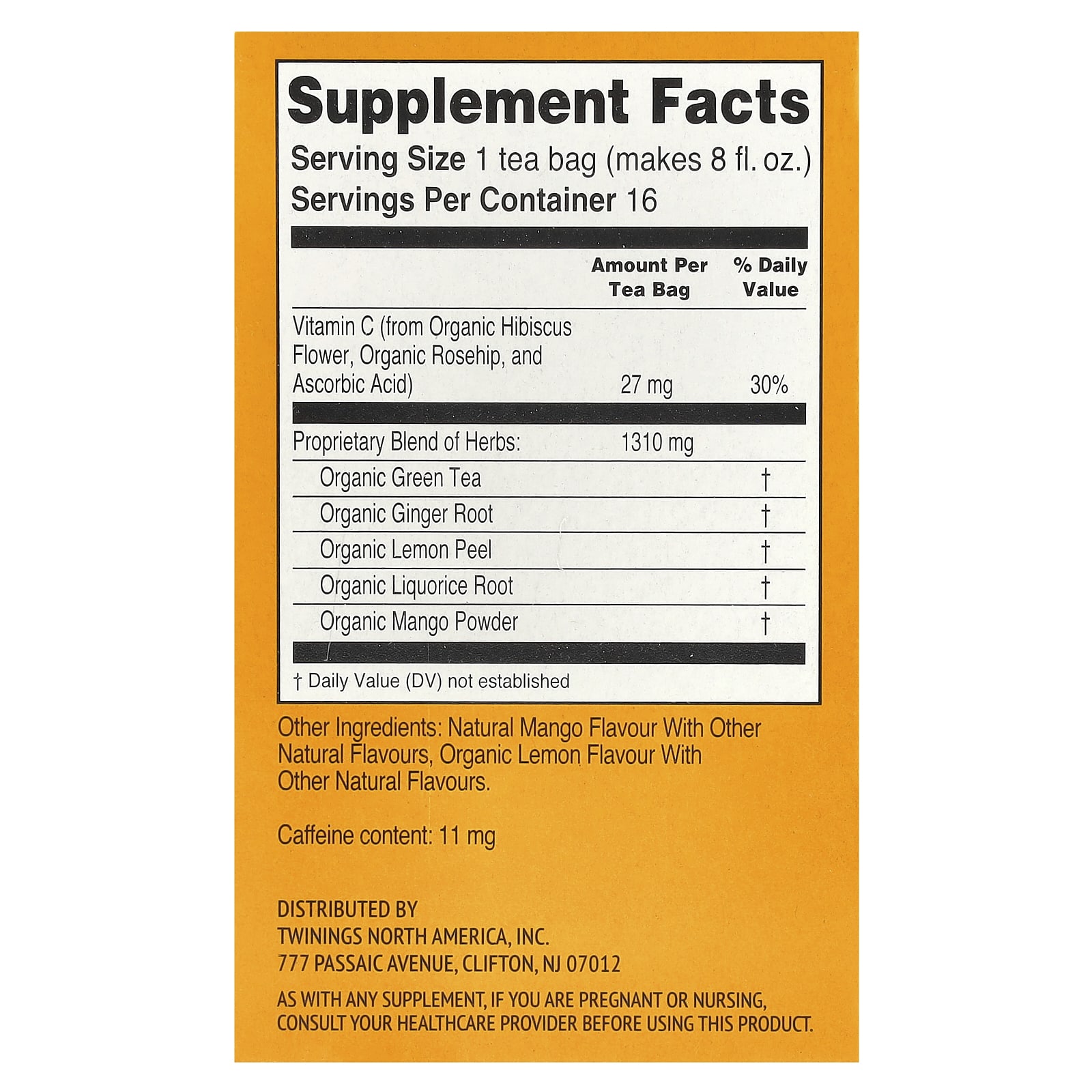 | Размер порции: 1 чайный пакетик (8 жидк. унц.) | ||