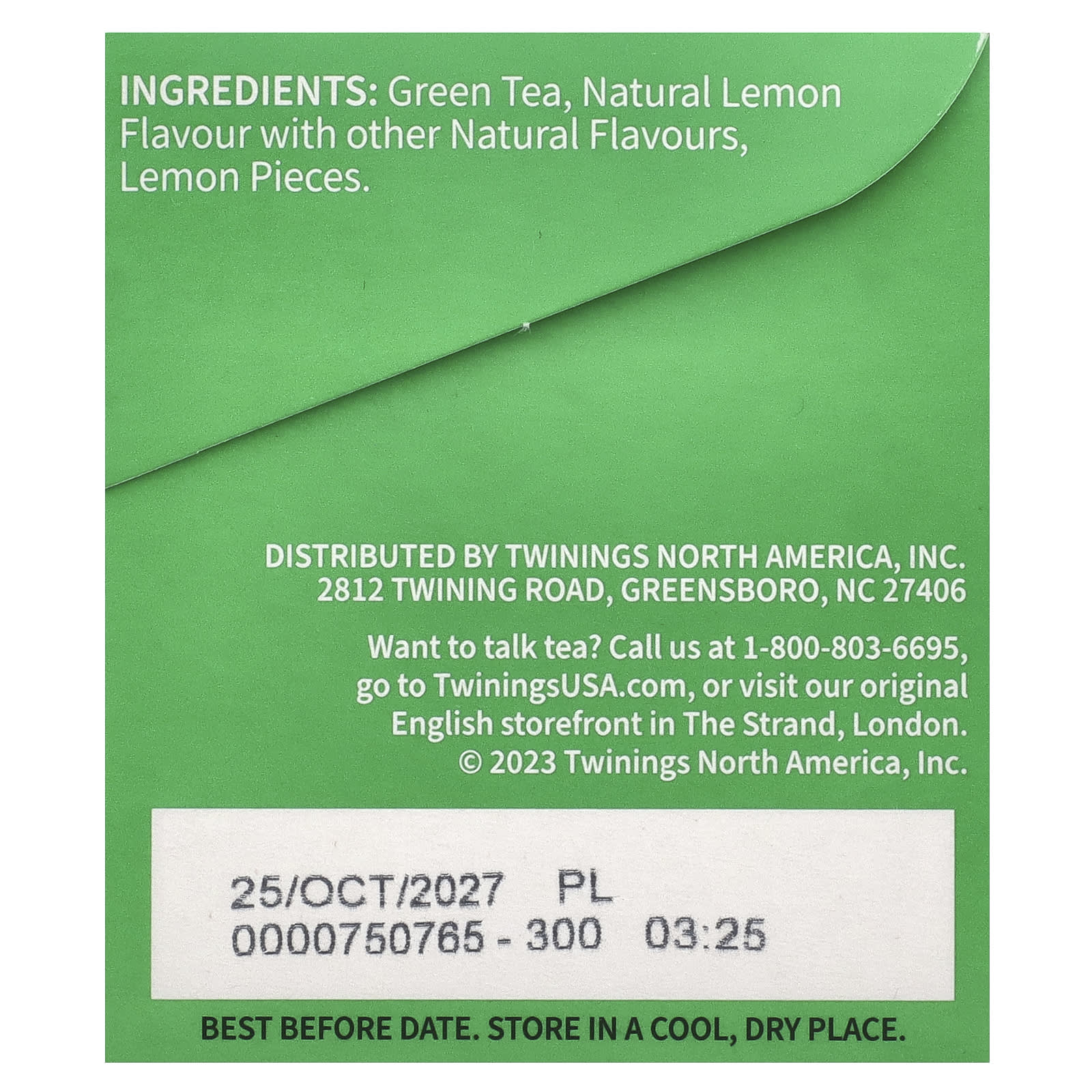 Зеленый чай, натуральный лимонный ароматизатор с другими натуральными ароматизаторами, кусочки лимона.