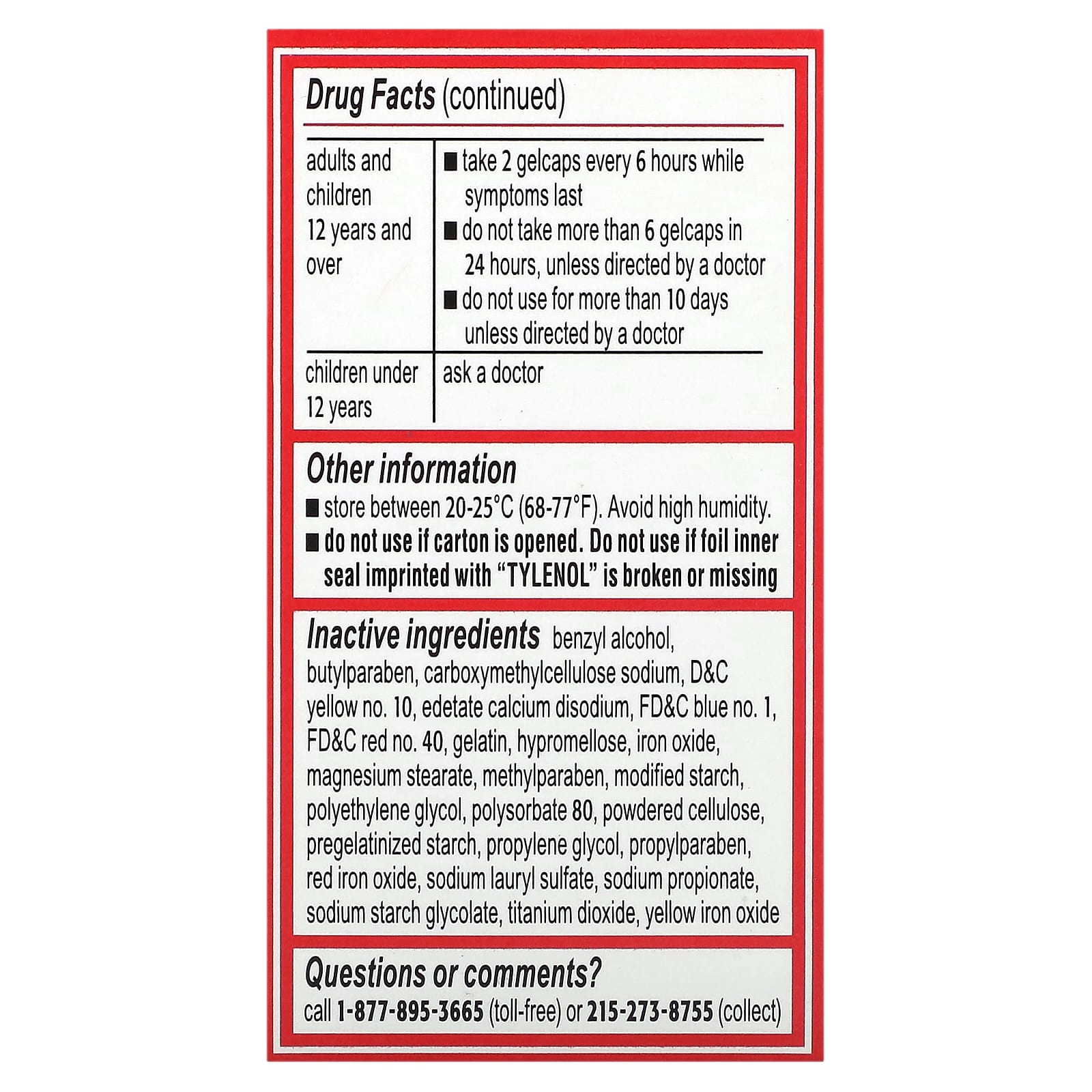 - Не используйте, если карбон открыт. Не используйте, если внутренняя пленка с надписью «TYLENOL» повреждена или отсутствует.