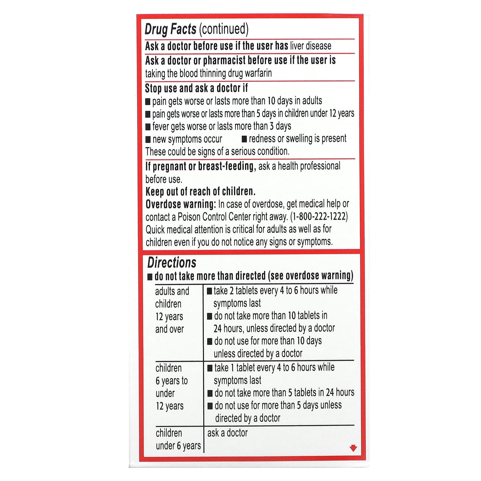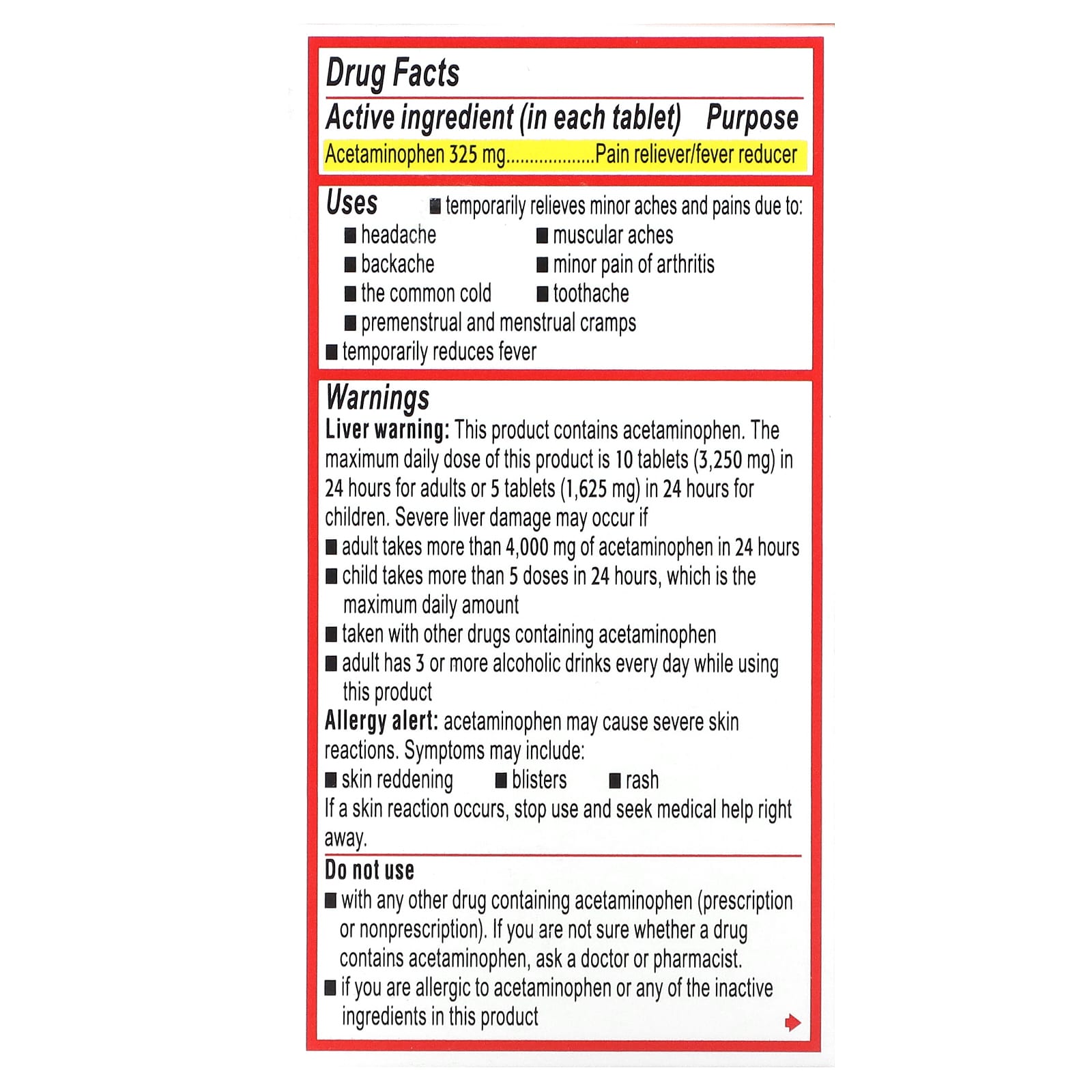Этот продукт содержит ацетаминофен. Максимальная суточная доза этого продукта составляет 10 таблеток (3250 мг) за 24 часа для взрослых или 5 таблеток (1,625 мг) за 24 часа для детей. Печень может серьезно пострадать, если: