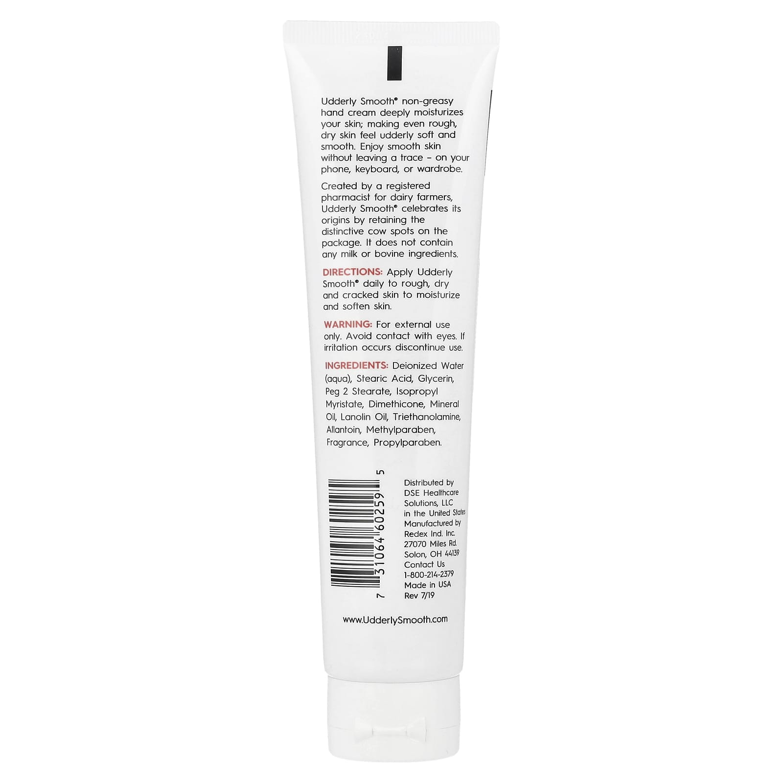 Изначально созданная зарегистрированным фармацевтом для молочных фермеров, компания Udderly Smooth® гордится своим происхождением, сохраняя характерные коровьи пятна на упаковке. Не содержит молока или каких-либо ингредиентов бычьего происхождения.