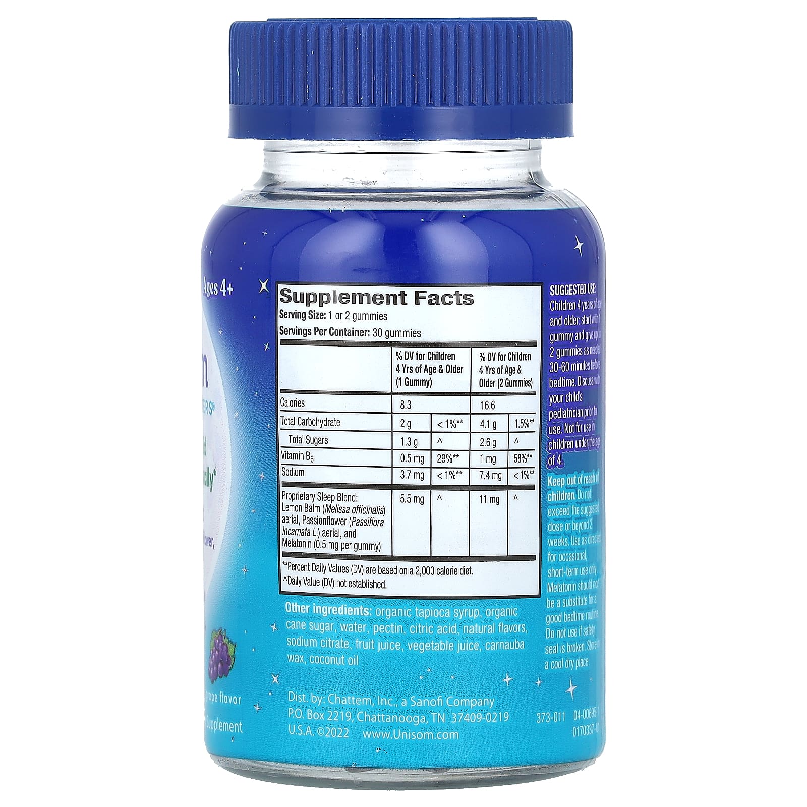Детям в возрасте 4 лет и старше: начните с 1 жевательной мармеладки и давайте до 2 жевательных мармеладок по мере необходимости за 30–60 минут до сна. Перед использованием проконсультируйтесь с педиатром вашего ребенка. Не предназначено для детей младше 4 лет.