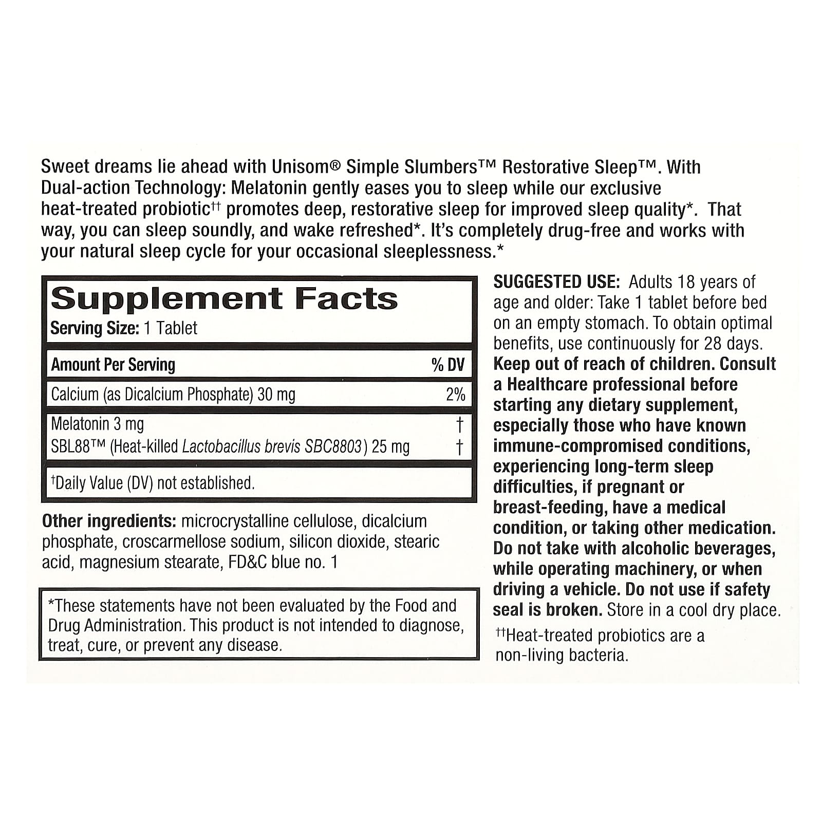 Сладких снов нет с Unisom® Simple Slumbers™ Restorative Sleep™. Технология двойного действия: Мелатонин бережно облегчает ваш сон, а наш эксклюзивный термически обработанный пробиотиꆆ способствует глубокому восстанавливающему сну и улучшению его качества. Таким образом, вы сможете крепко уснуть и проснуться отдохнувшими. Он не содержит наркотических веществ и воздействует на естественный цикл сна, устраняя эпизодическую бессонницу.