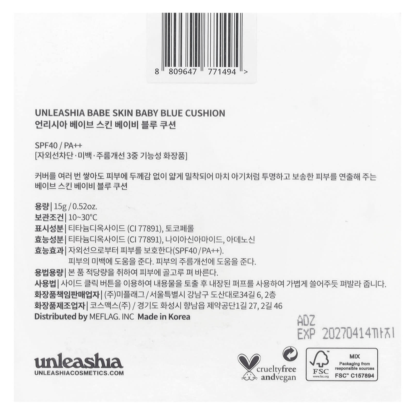 Unleashia, Babe Skin, Baby Blue Cushion, SPF40 / PA ++, 23 Вт Jolly, 15 г (0,52 унции)