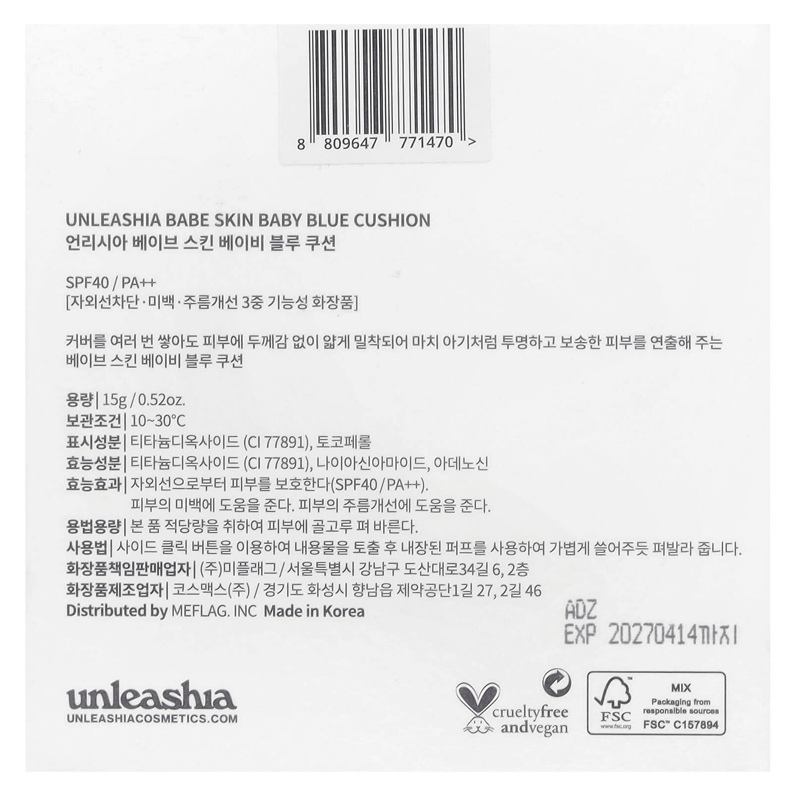 Unleashia, Babe Skin, Baby Blue Cushion, SPF40 / PA ++, серафик 17C, 15 г (0,52 унции)