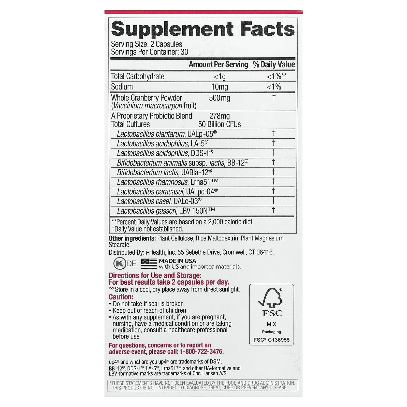 илиФормула комплексного действия содержит 9 эффективных штаммов пробиотиков, а также порошок из цельной клюквы для поддержания здоровья мочевыводящих путей, влагалища, пищеварительной и иммунной систем.Продукт содержит 50 миллиардов КОЕ, что гарантирует эффективность до истечения срока годности∞.